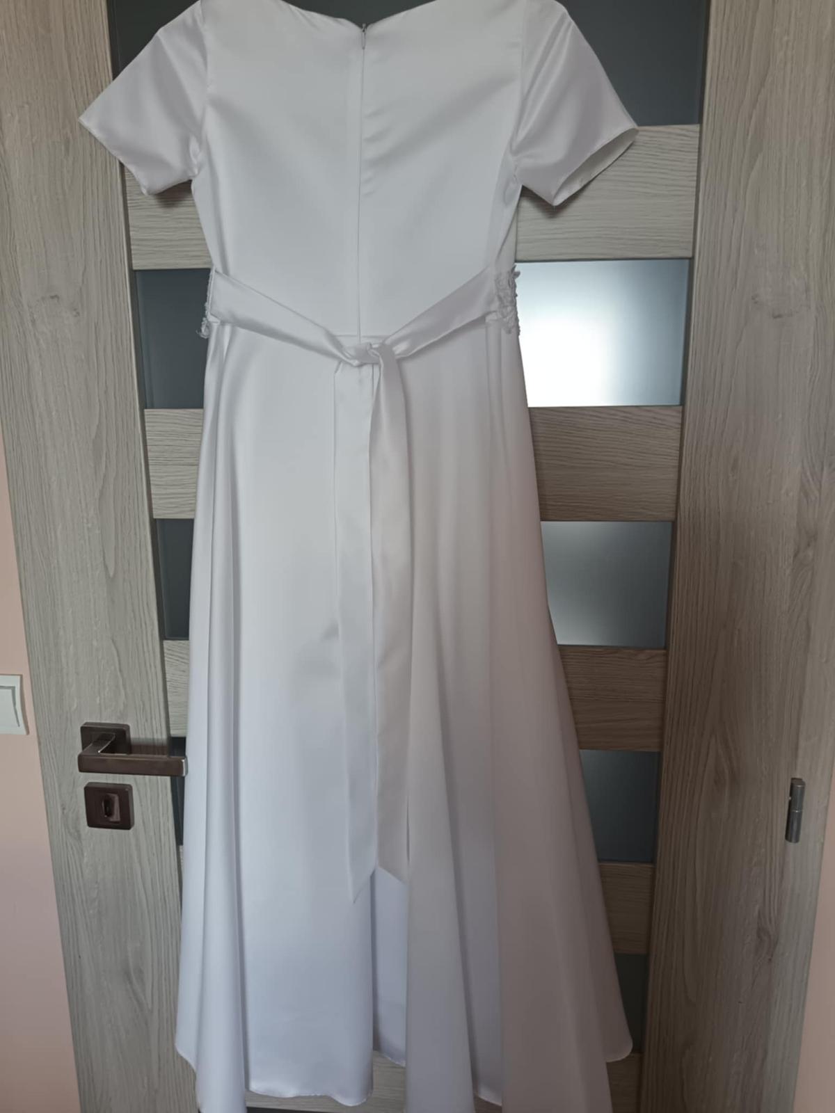 Oblečené 2x, bez poškodení. Šité na mieru vo svadobnom salóne. Rovnaké nenájdete😉 Súčasťou je aj spodnička s kruhom a rukavičky. V prípade záujmu je k dispozícií aj venček. Vhodne na 1sv.prijímanie...