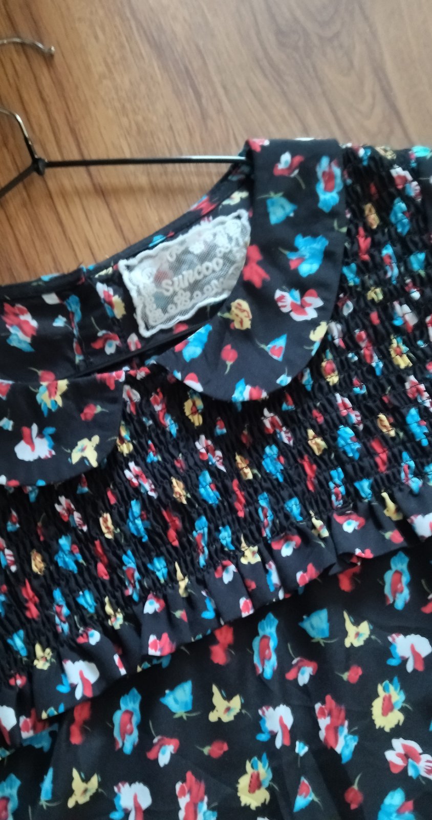 Dámske ležérne šaty s trojštvrťovým rukávom. Šaty majú volány na spodku aj na spodku rukáve. Zapínanie na gombíky. Véčkový výstrih. Tenké. Nie sú elastické. Materiál:100%viskóza. Veľkosť UNI (vhodn...