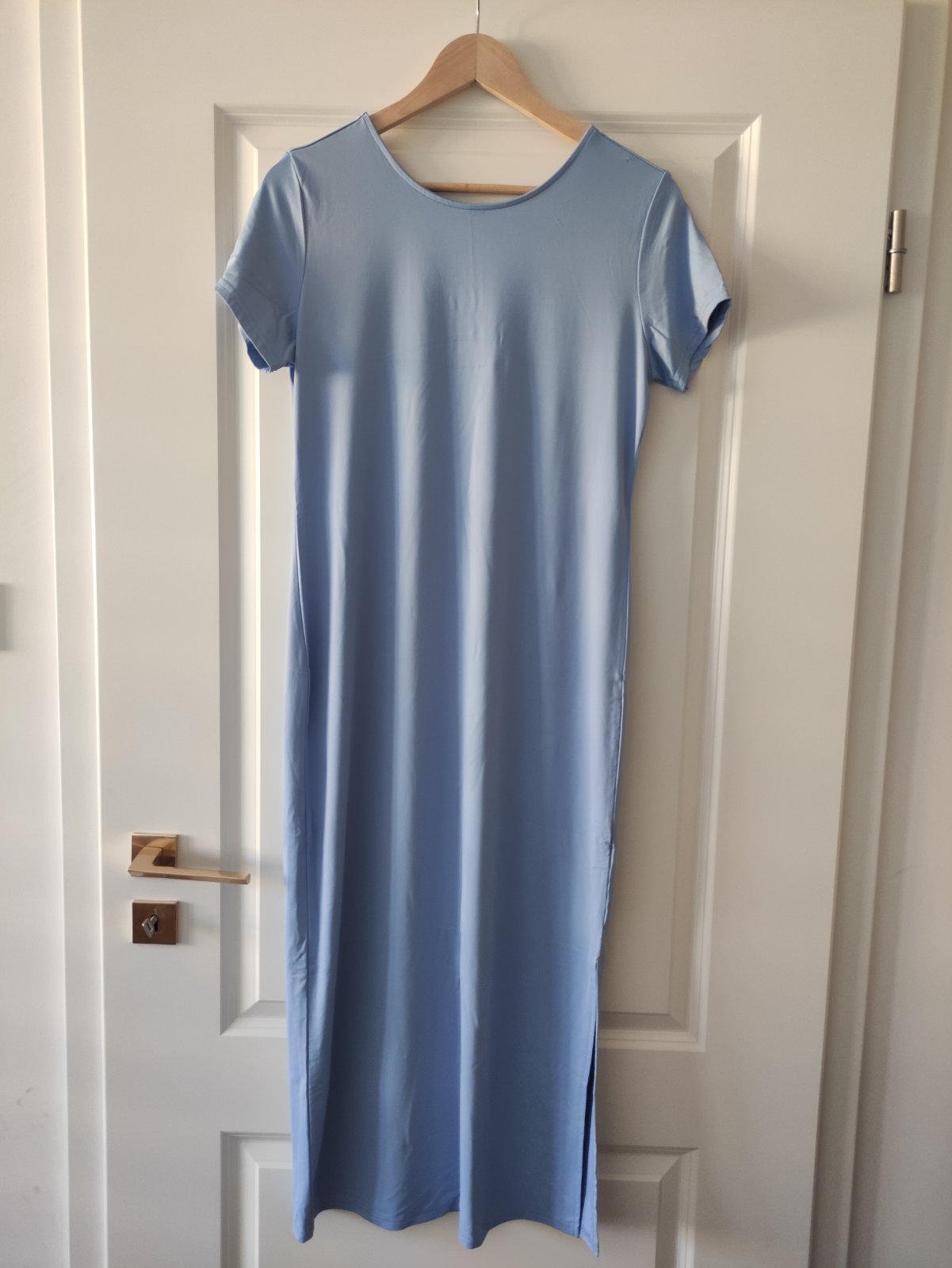 Pruzne lahke letne saty, len oprate, rozmery: dlzka 130cm, prsia v klude 47x2cm, max 65x2cm.