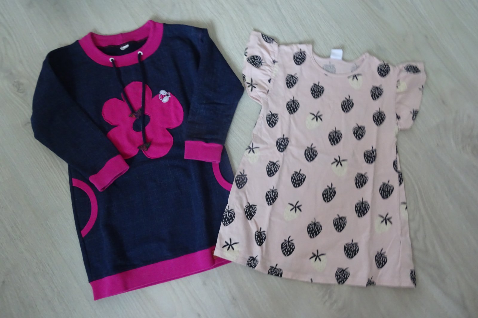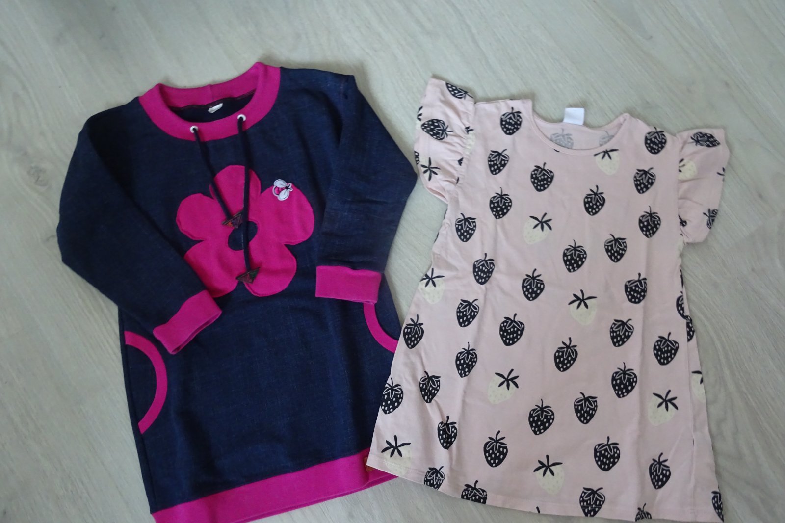 Ponúkam na predaj šaty pre dievčatko, svetlé šaty letné krátky rukáv značka Lindex č. 104, CD 50,5cm, šírka 31,5cm. Tmavomodré šaty s dlhým rukávom hrubšie značka Modelko č.104/110 CD 55cm. Obe pekný stav. Cena: 6 eur plus pošta alebo osobný odber Bernolákovo.