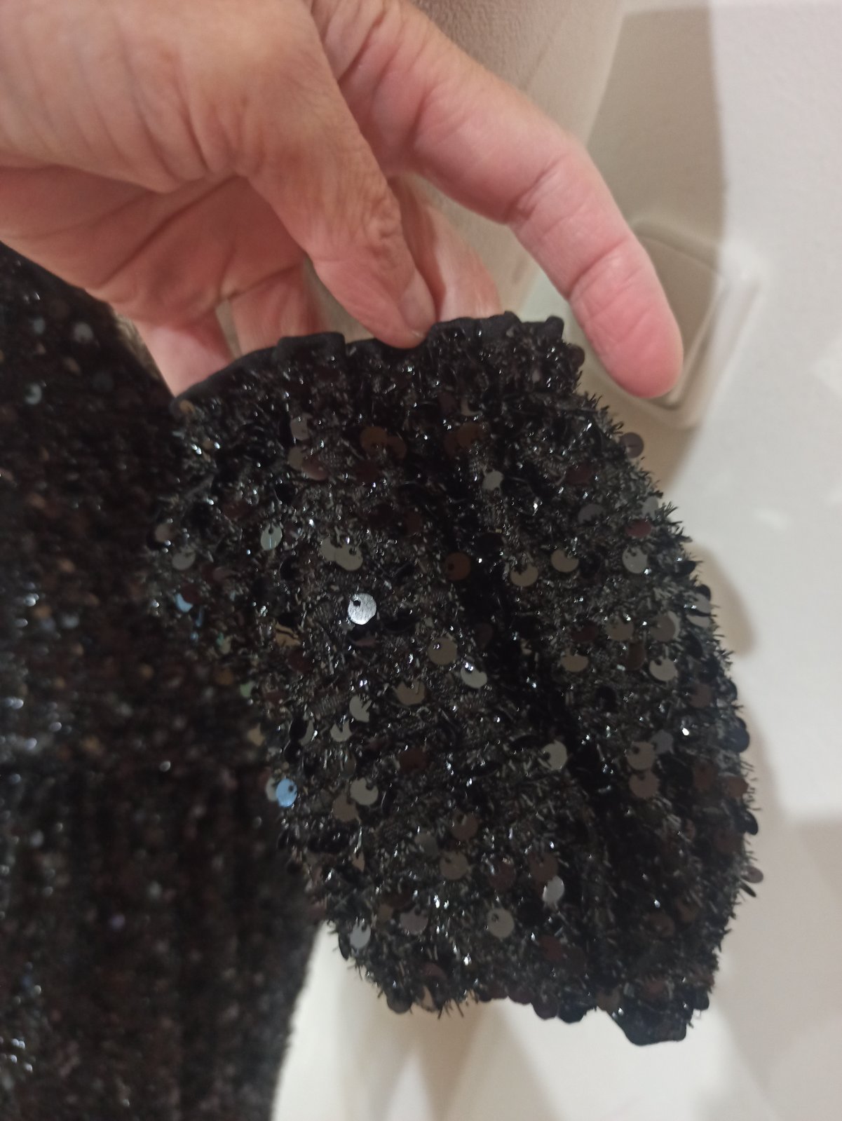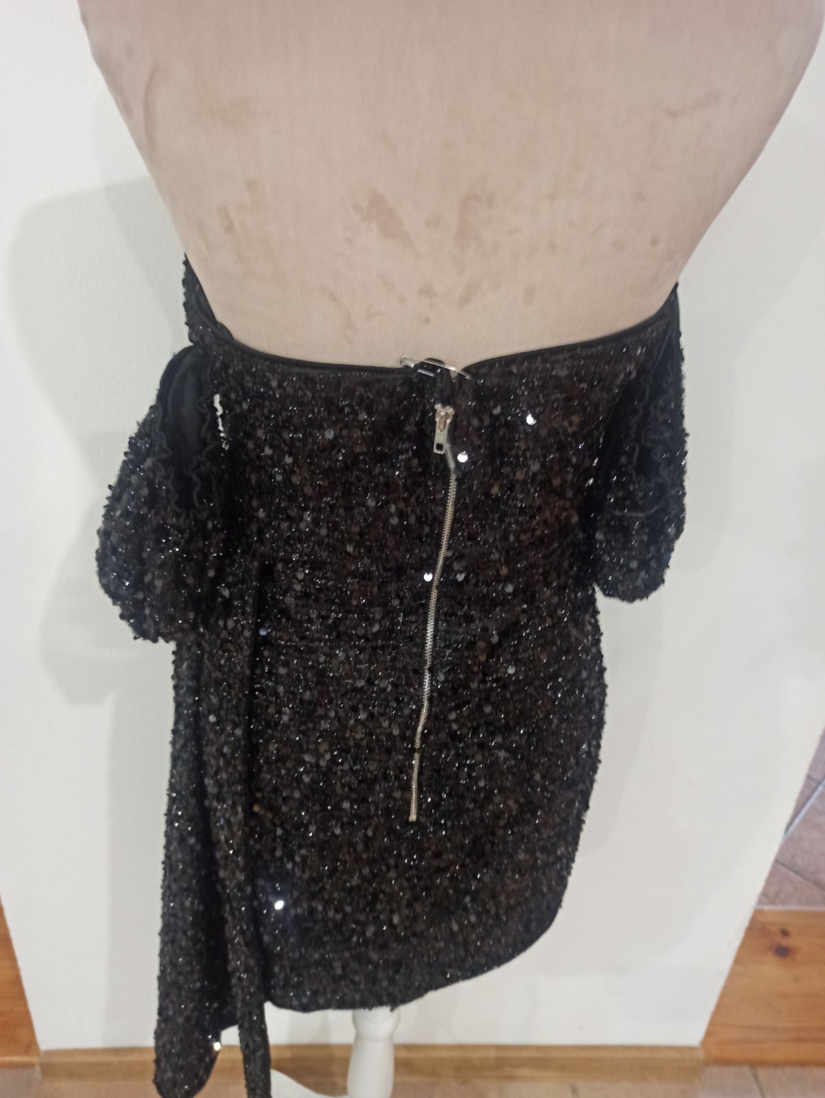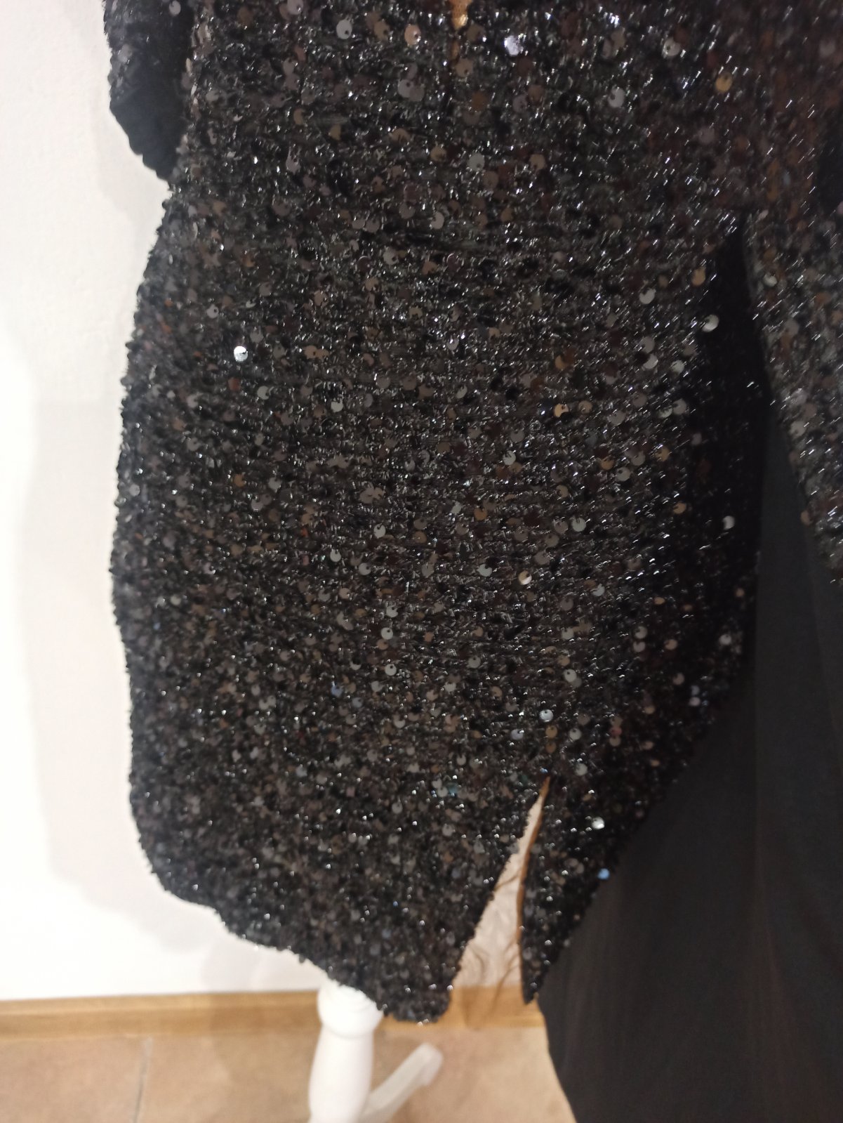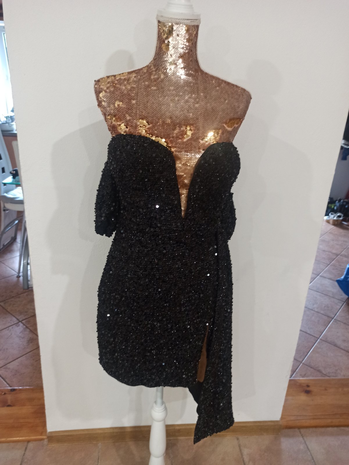 Jednoduché elegantné mini šaty. Čierne s čiernymi roztrúsenými flitrami. Raz oblečené na večierku, top stav. Na večer, párty, večeru, alebo aj na príležitosť. Veľkosť písaná L, podľa mňa je to vša...