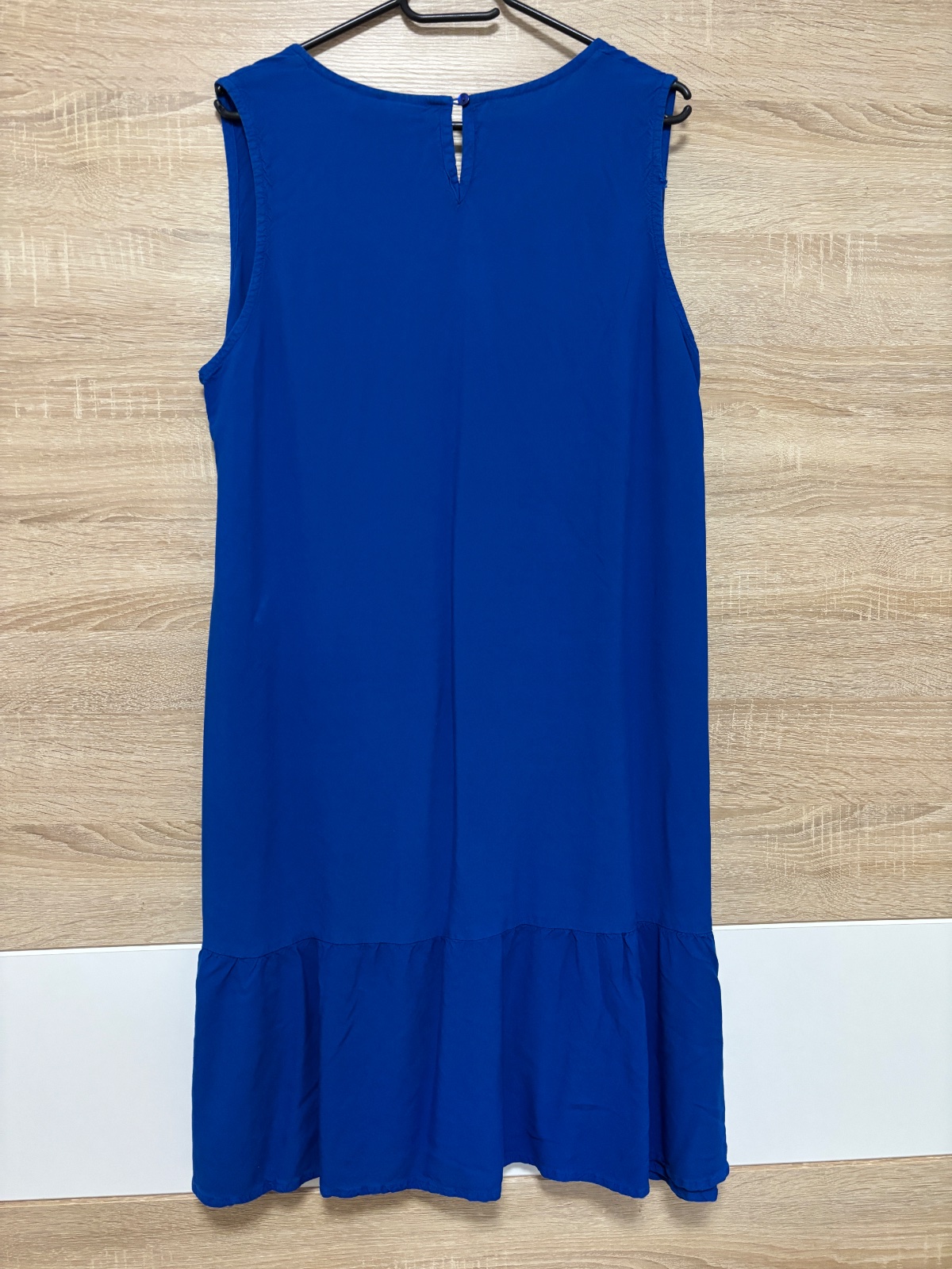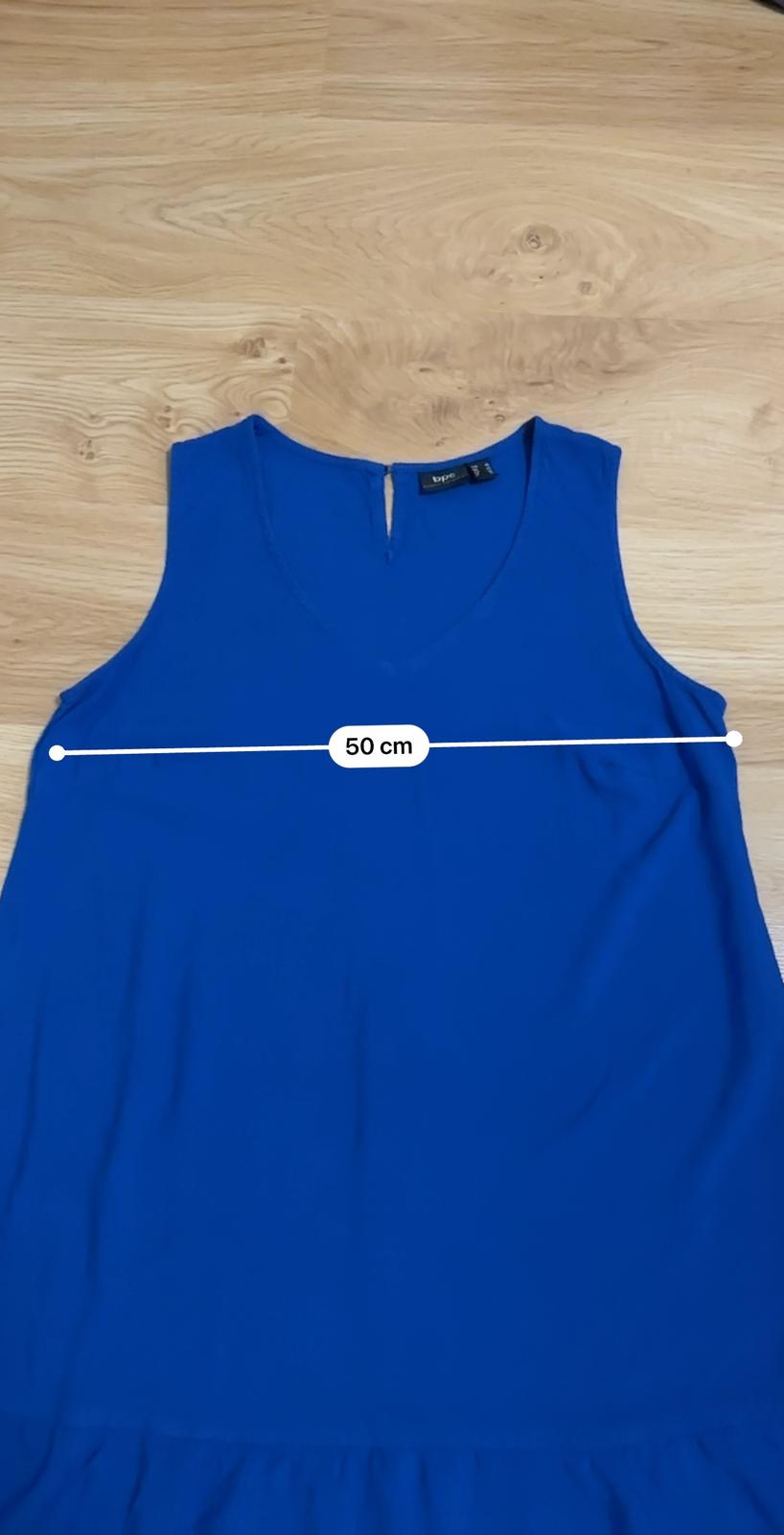 Letné elastické podšívkované šaty s obliekaním cez hlavu. Zadná dĺžka je 95cm, poloobvod cez prsia 50cm.