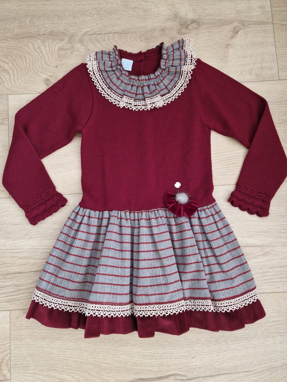 Nádherné šaty, Grantel , pre dievčatko okolo 8r. 128/134. Dlzka 62cm, rukáv 46cm, sedielko 8cm. Pás cca 62cm, Nenosené. Vzadu na gombíky. Skladana sukňa, zamatová masla, golierik.