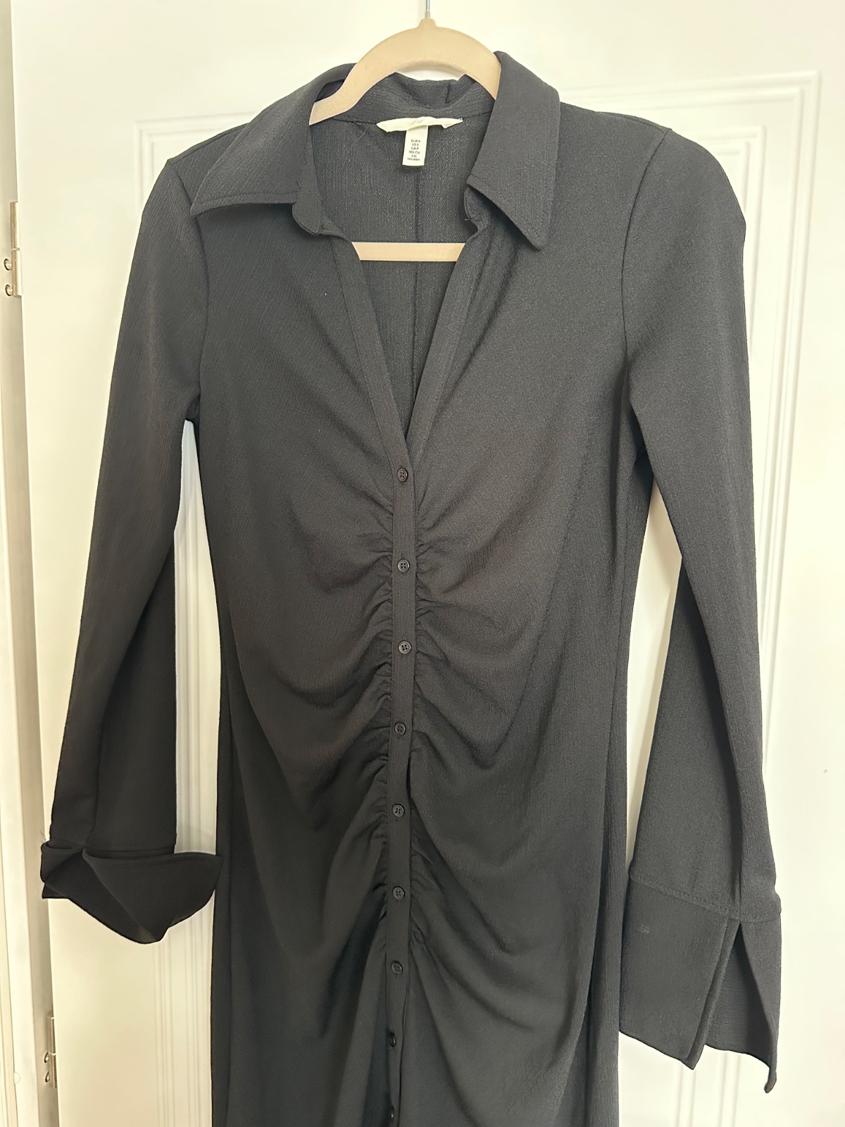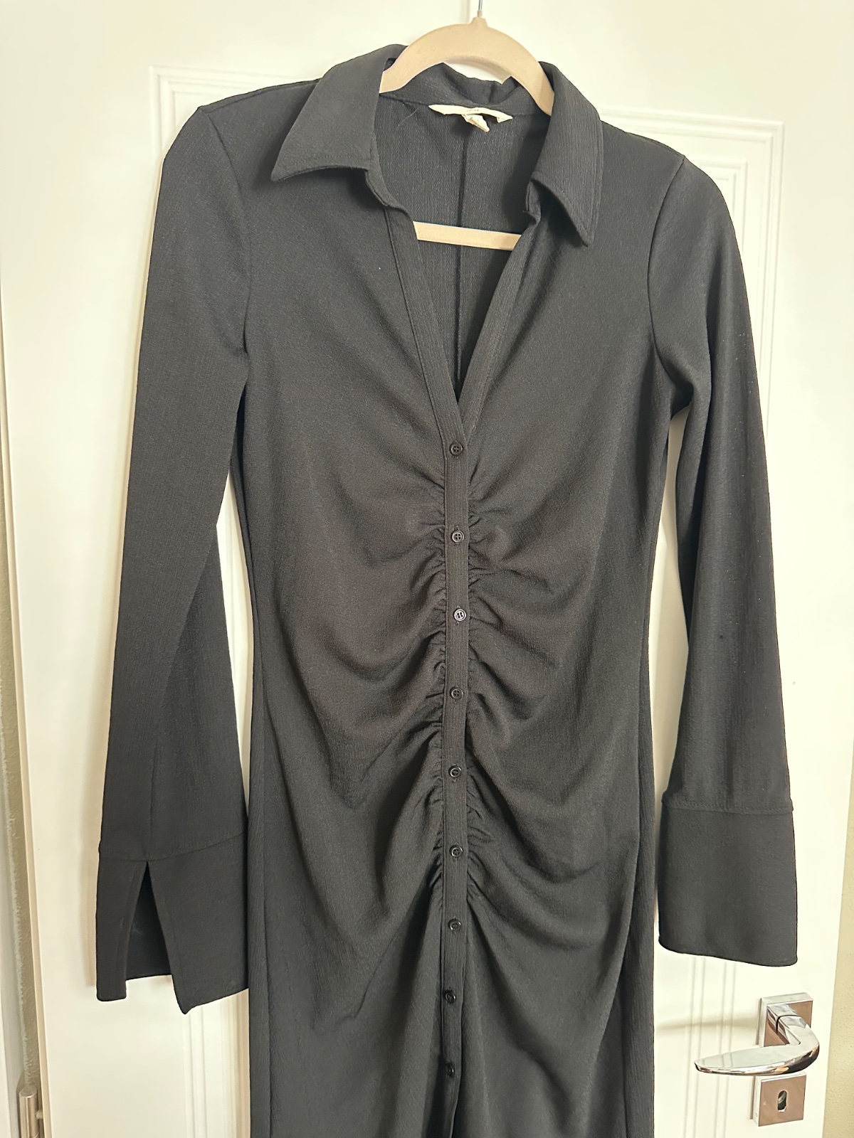 Raz oblečené saty, obtiahnuty strih v prednej časti riasenie a razporok. Limcek a zaujímavý detail na rukávoch. Pekne na elegantno aj k teniskám.