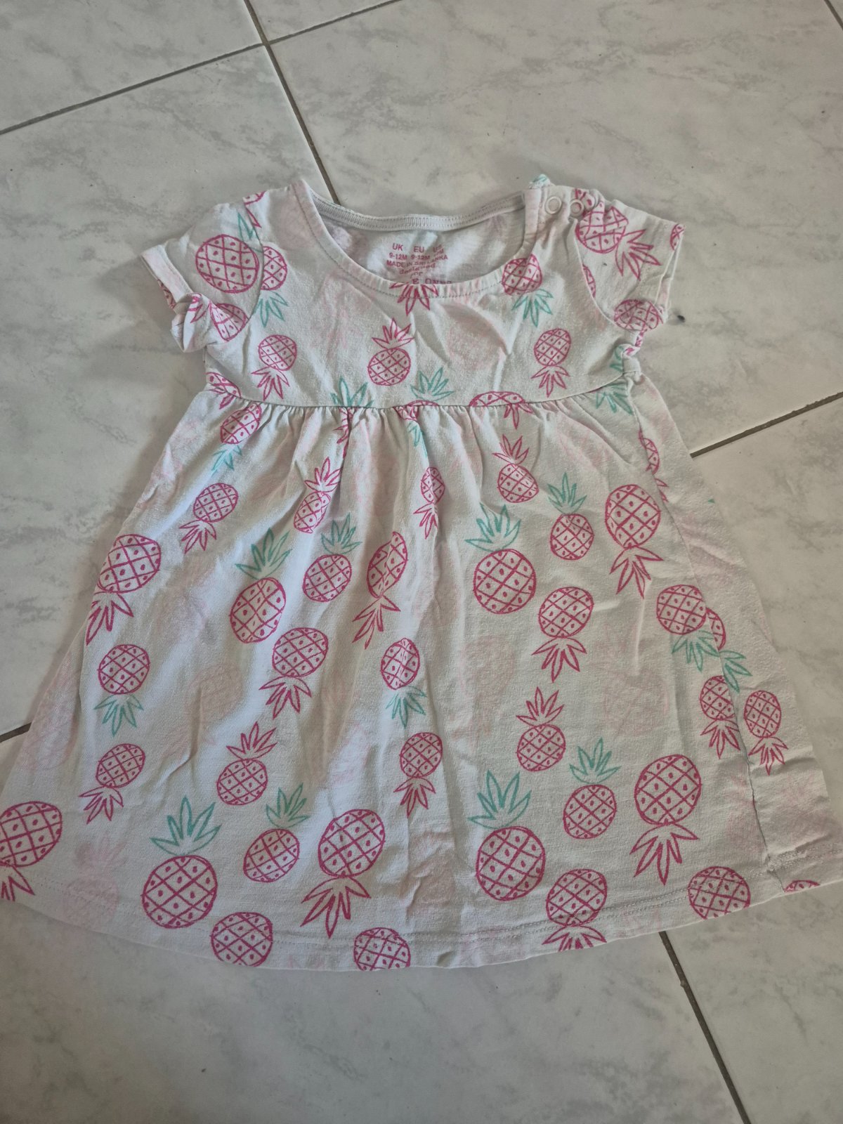 Predám biele šaty s ananásmi, vel.80,značka F&F,majú prací chĺpok inak dobry stav, cena 0,80€