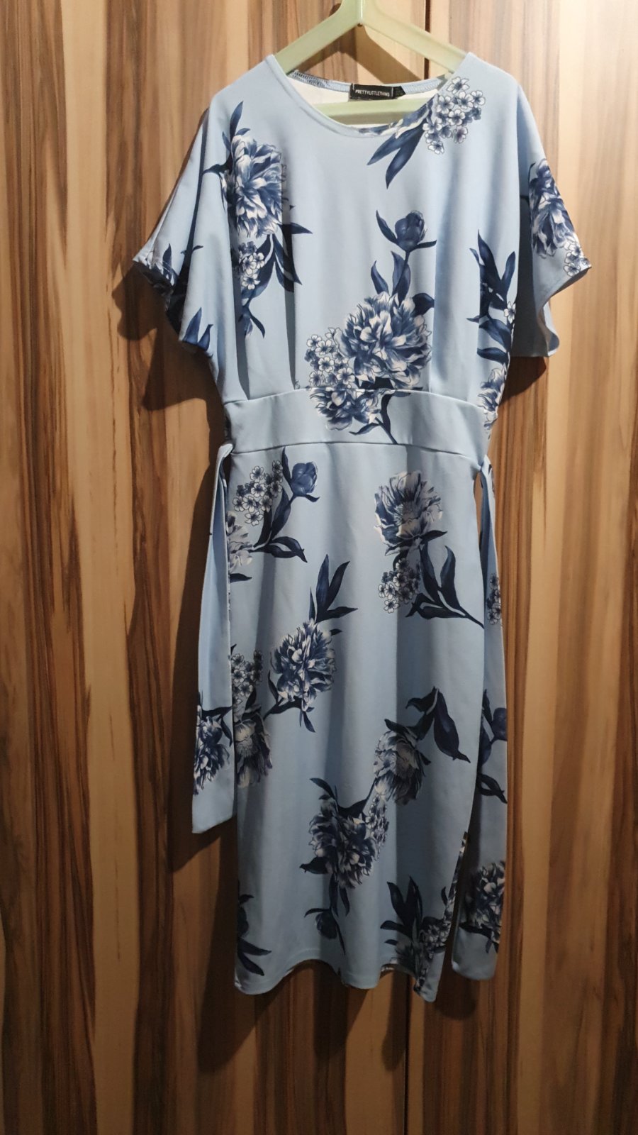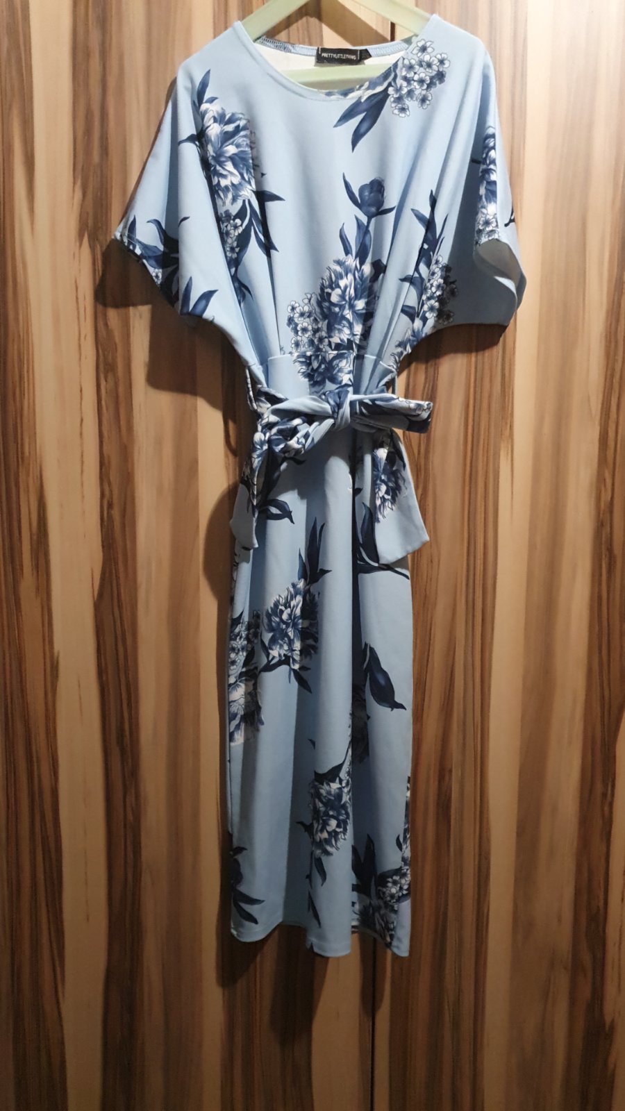 Prekrásne saty v užasnej modrej farbe, obrovské kvety bielo modrých kosatcov po celom povrchu. V pase presité, suknova cast mierne nariasená. Satky su elastické, kvalitná hrubsia latka, da sa prat ...