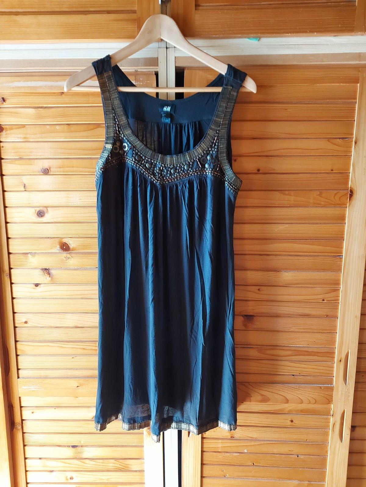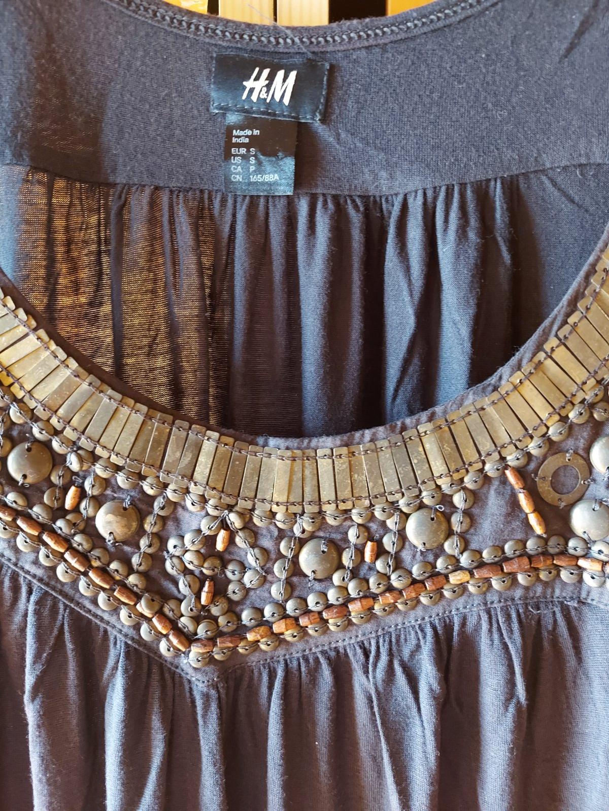 Letné šaty H&M, S, voľný strih, takže kľudne aj M, š. pod pazuchami - 43, celková dĺžka - 71, elastický materiál, šaty ozdobené okolo krku aj na spodnom leme-viď foto.