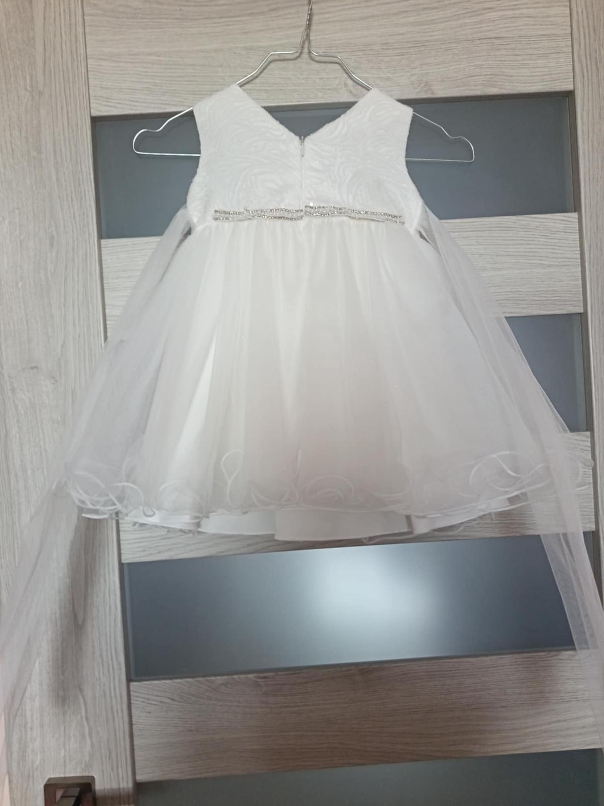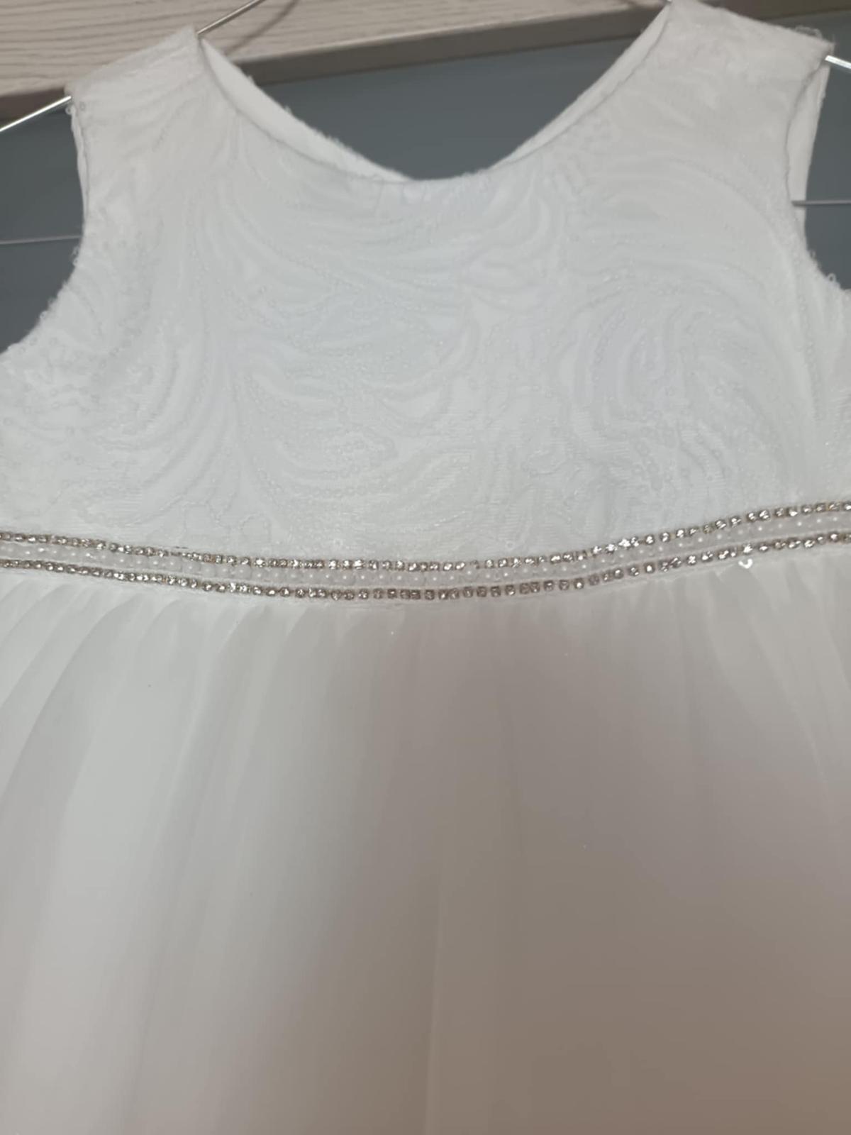 Biele šaty, vzadu na gombíky a mašličku. 1x oblečené. Ako nové.