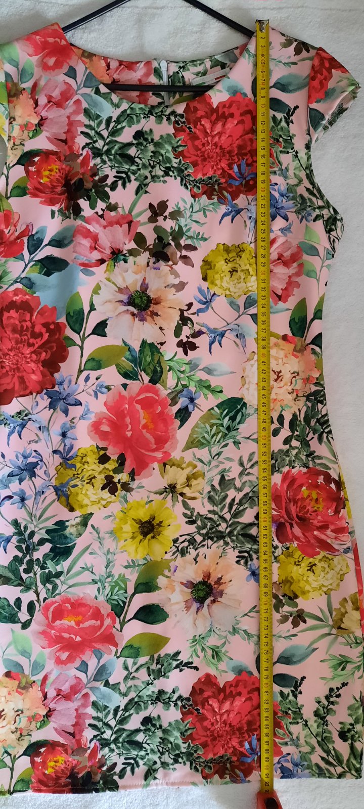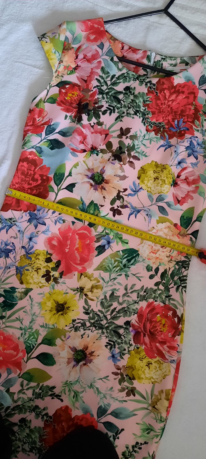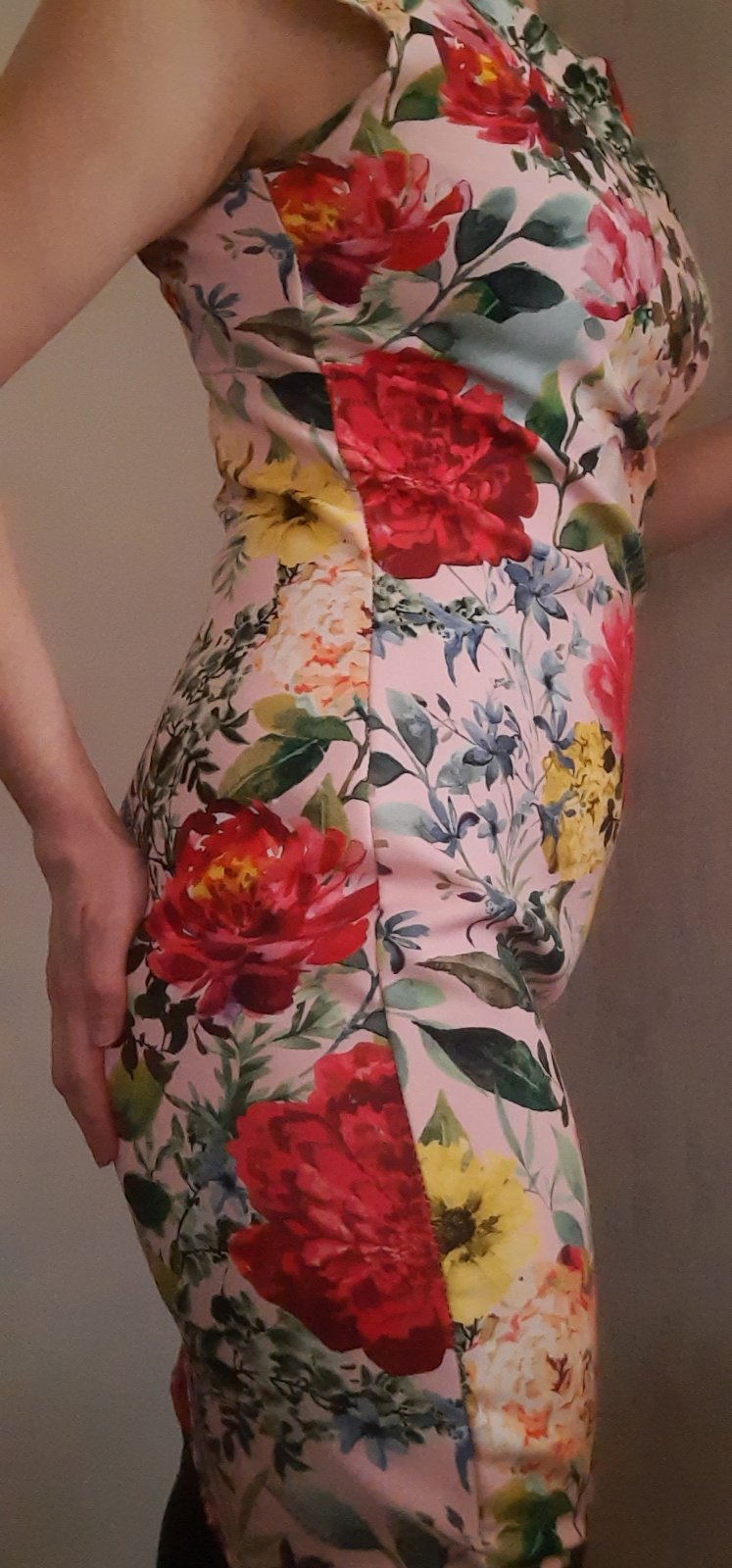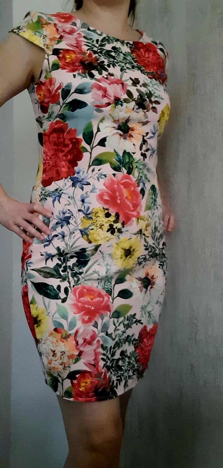 Elastické púzdrové šaty raz oblečené. Žiaľ, podarilo sa mi ich na jednej strane na pravom boku zatiahnuť na viacerých miestach, preto tá cena. 3 mini dierky aj zatiahnutia som nafotila. Nie je ich skoro vidieť. Sfotila som tú bočnú stranu na postave. Šikovná žiekna si to dokáže opraviť (hoci len ručne). Prípadne zúžiť po bokoch na menšie číslo. Veľkosť uvedená L, no podľa mňa max M. Rozmery aj materiál na fotkách. Fotené na výške 163cm a 63kg. Kopírujú postavu.