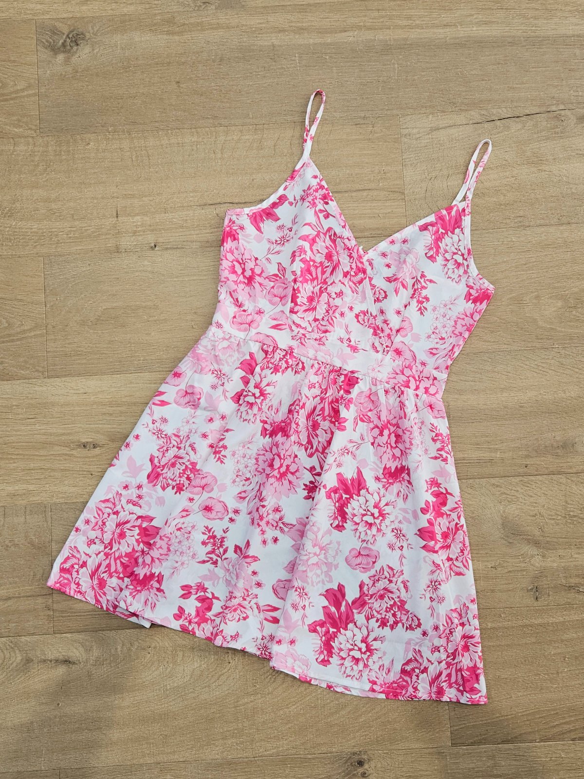 SkladomLetné kvetinové šaty, majú zips na chrbte, ramienka majú nastaviteľnú dĺžku. Šírka v páse 37 cm, dĺžka 81-85 cm podľa nastavenia ramienok. V galerii sú aj moje "real" fotky.