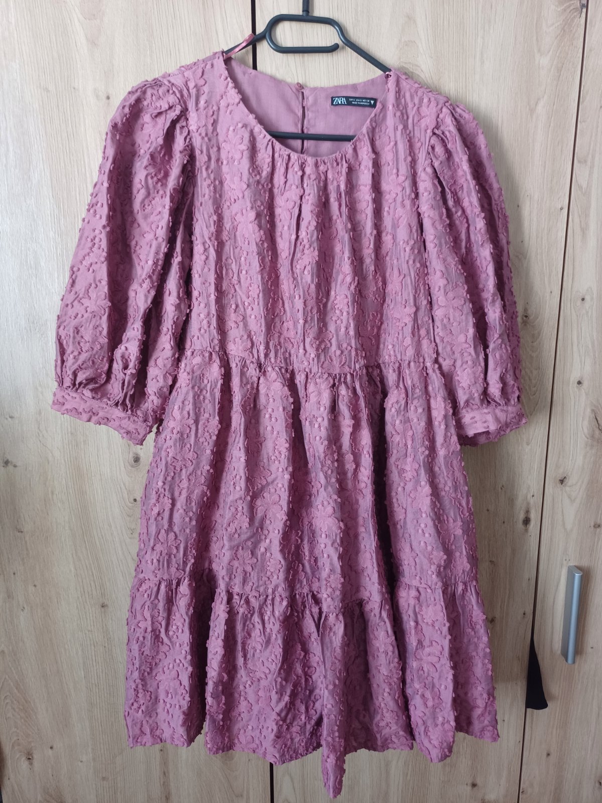 Šaty zn. Zara, majú bočné funkčné vrecká, vzadu sú predĺžené, 3/4 rukáv. Farba je ako na fotkách s modelkou (mne ich presvetlil blesk). Materiál 100% polyester. Podľa toho s čím ich skombinujete, s...