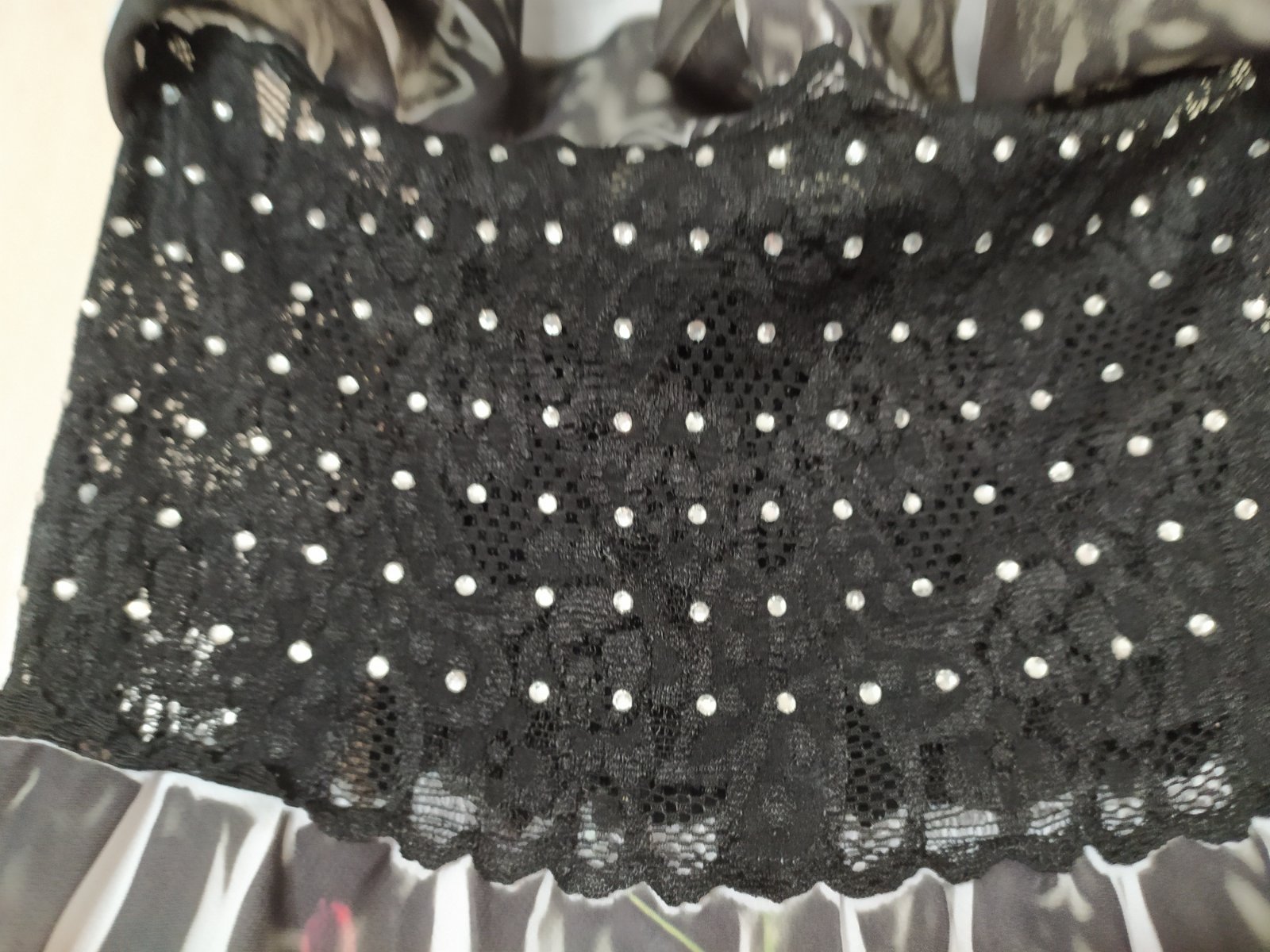 Krasne kokteilove cierne saty len vyskusane. Na niektorych miestach cipka vid foto. Top stav Celkova dlzka 69,5 cm. Sirka hore 32 cm, pod prsiami 31 cm, boky 36 cm a uplne dole 35 cm. Su dost elast...