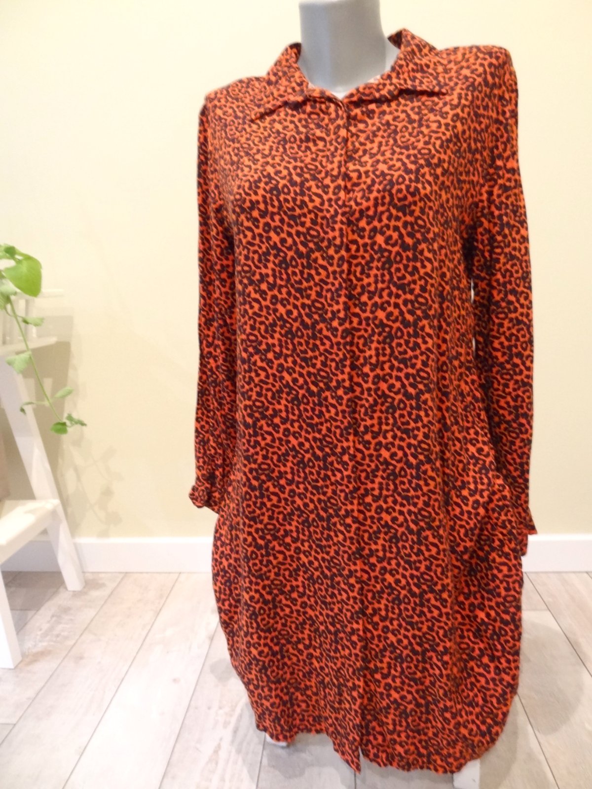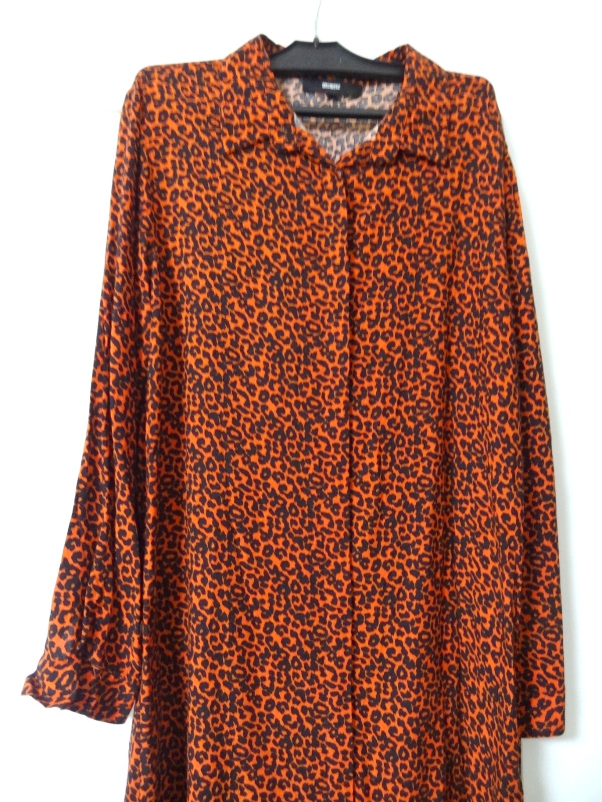 Dámske košeľové šaty so zvieracím motívom ... výborný stav...značka: ANSWEAR... veľlkosť L - predná dlžka 90 cm, zadná dlžka 98 cm, šírka pod pazuchami 46 cm