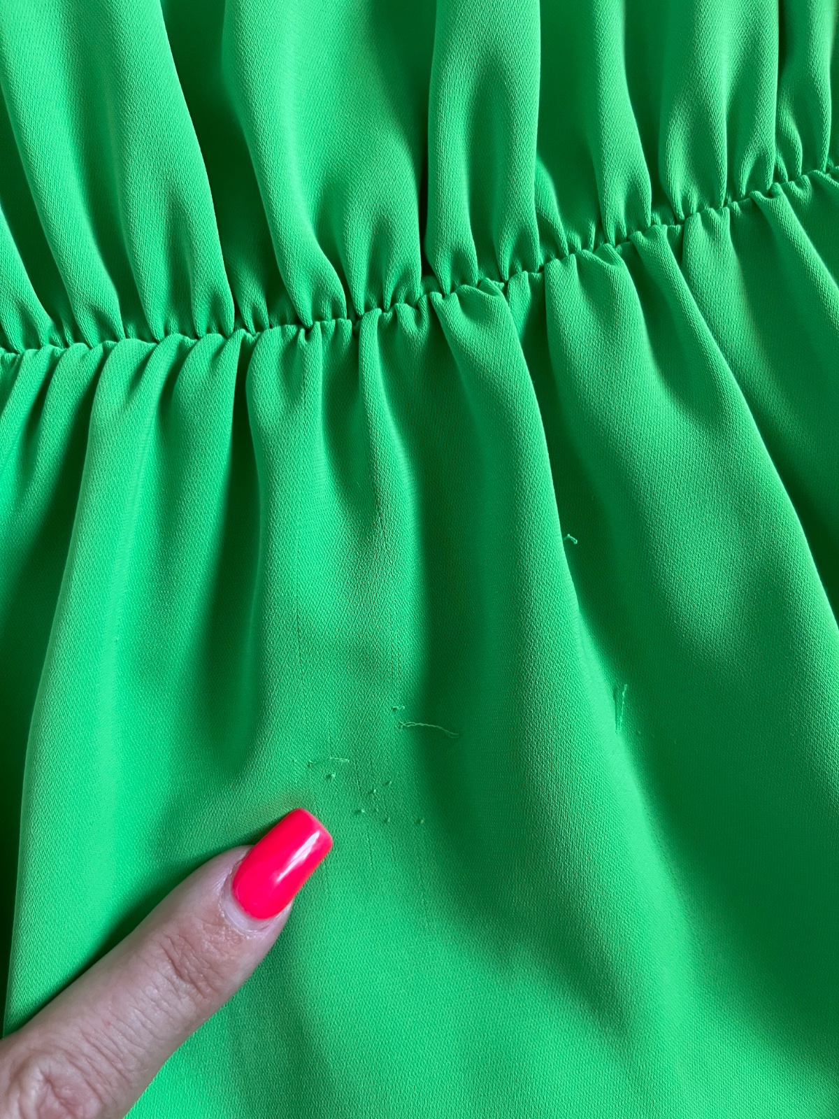 Krásne ľahučké letné šaty, majú pár zatiahnutí, foto detail.