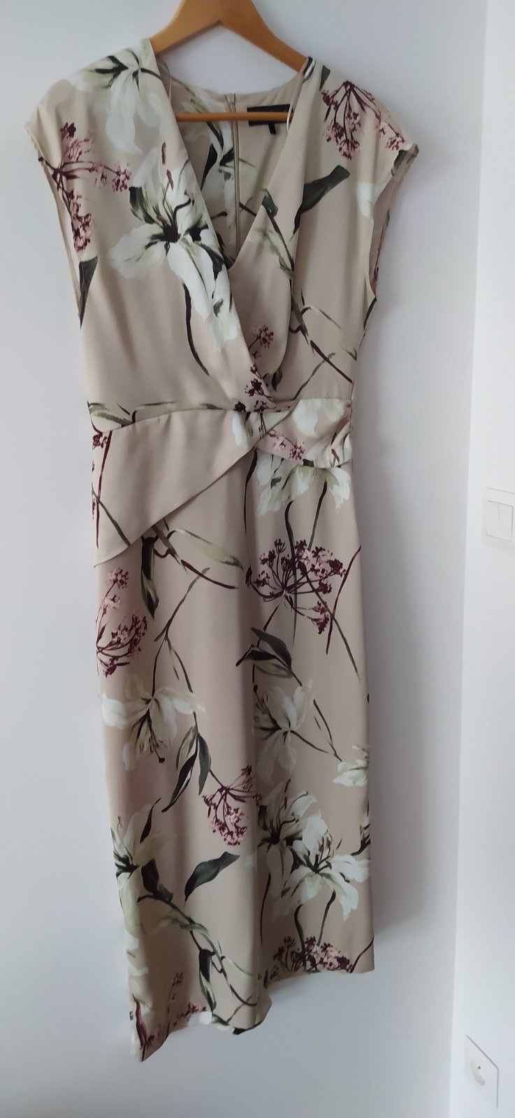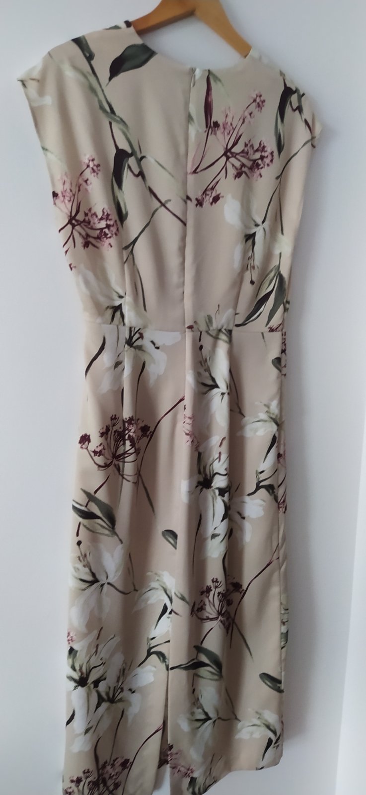 Predám krásne midi béžové letné ĺanové šaty s výstrihmi, vel.Lzn.ZARA,