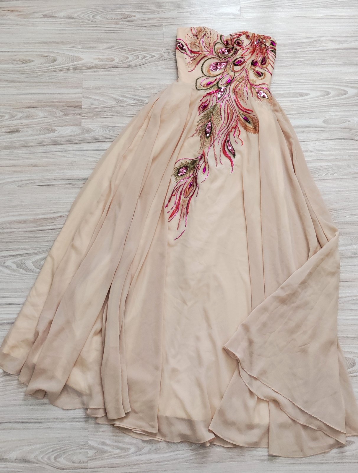 Krásne spoločenské šaty vo veľkosti 32, je potrebné si pár kamienkov poprišívať, aby neodpadávali. Vzadu je šnúrovanie, takže s prehľadom sadnú až po S. Značka Grace Karin.