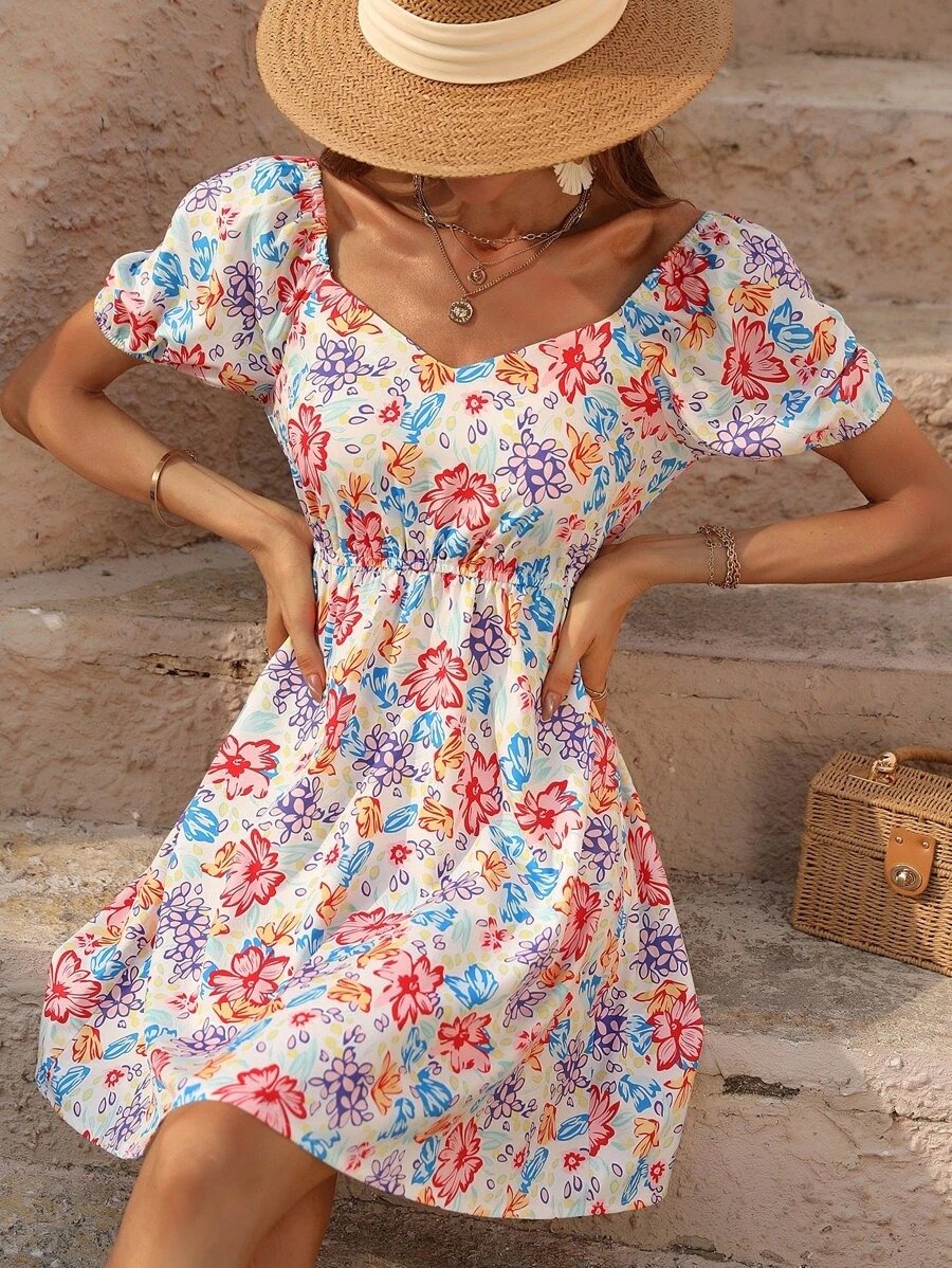 krásne lahučké kvetinkové minišaty s gumičkou pod prsiami