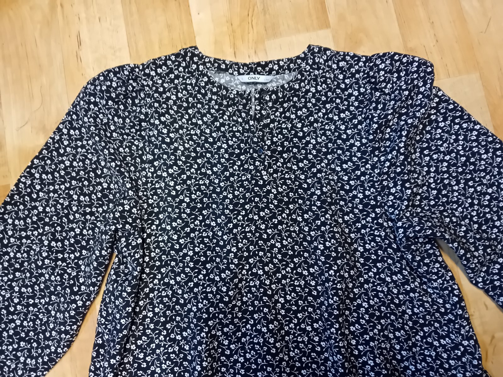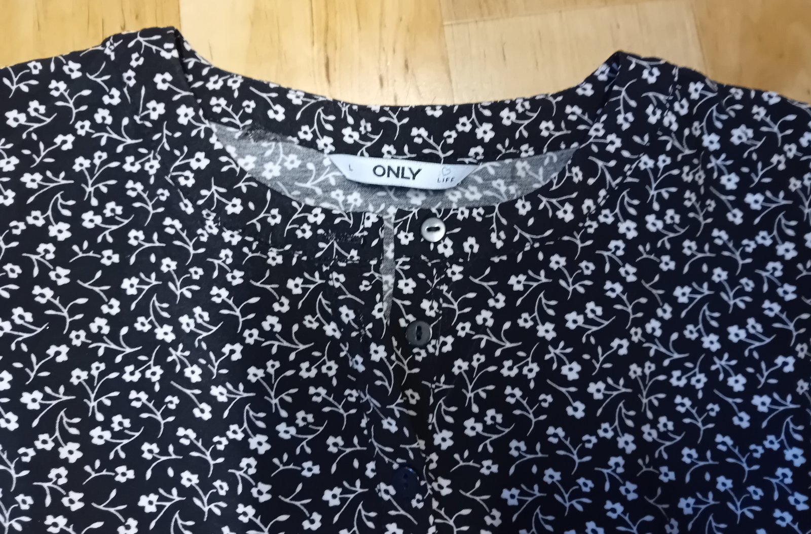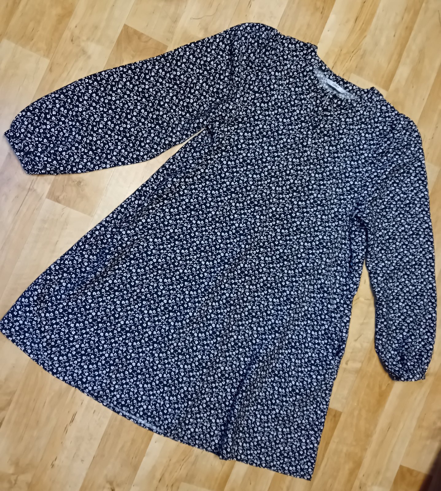 Krásne voľne šaty Only,vhodné aj pre tehotnú,aj ako bežné voľné šaty. Šité do áčka,na zadnej strane mierne riešenie,vpredu 3 gombíky,pre lepšie obliekanie.Ľahucky padaby materiál,čierny podklad,biele kvietky.Ako nové,top stav,vhodné aj ako darček.