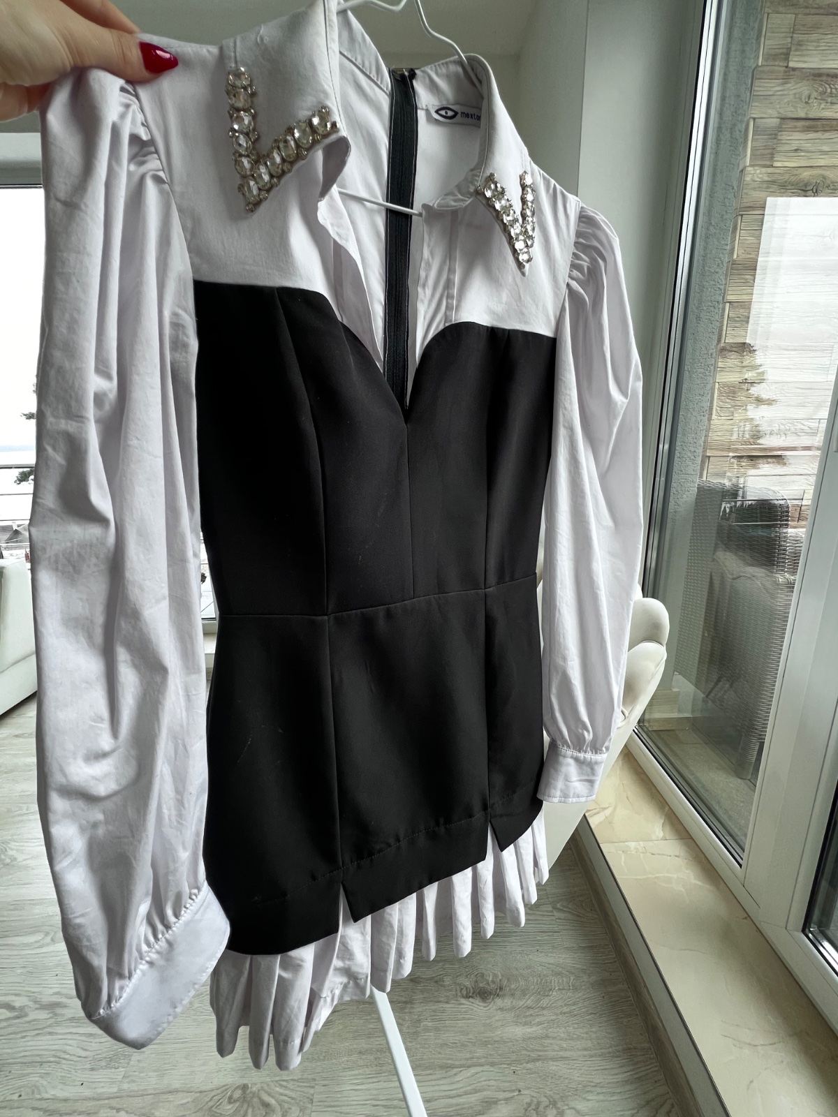 Elegantne šaty od Mexton ! Vhodne aj do kancelárie . Golierik košele zdobený kamienkami . Oblečené na fotenie !