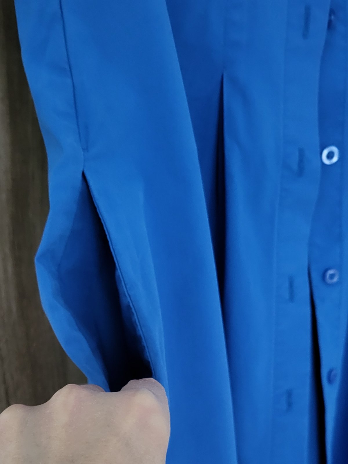 Vačky sú po oboch stranách. Šité do Á-čka. Materiál: 100% bavlna. Dĺžka: 102 cm. Šírka ramien: 39 cm. Obvod v páse: 84 cm.