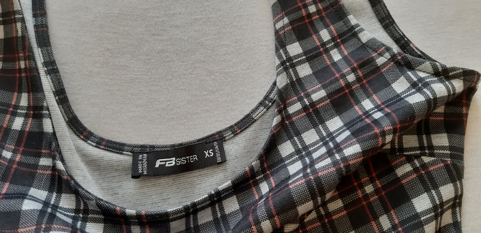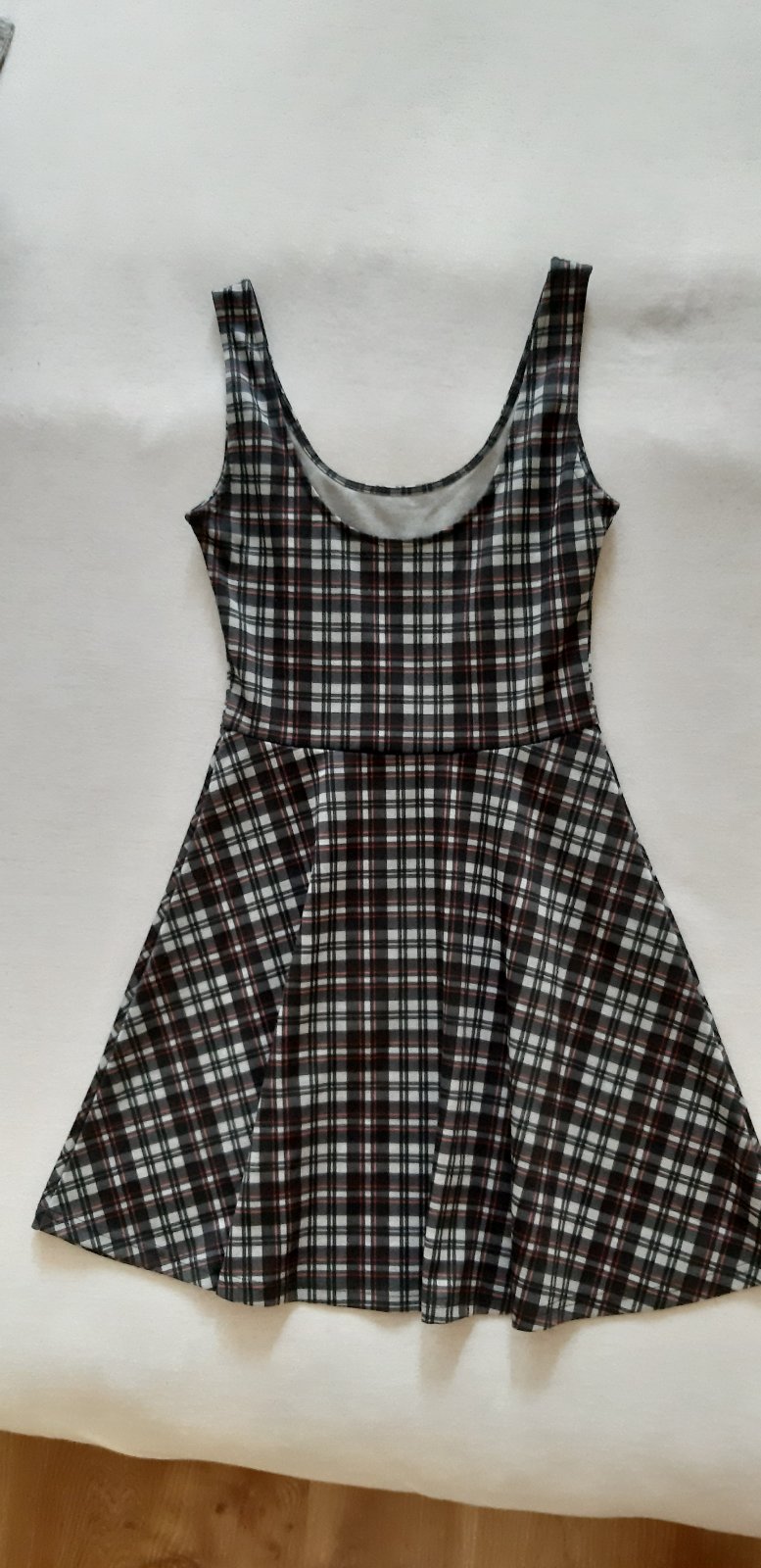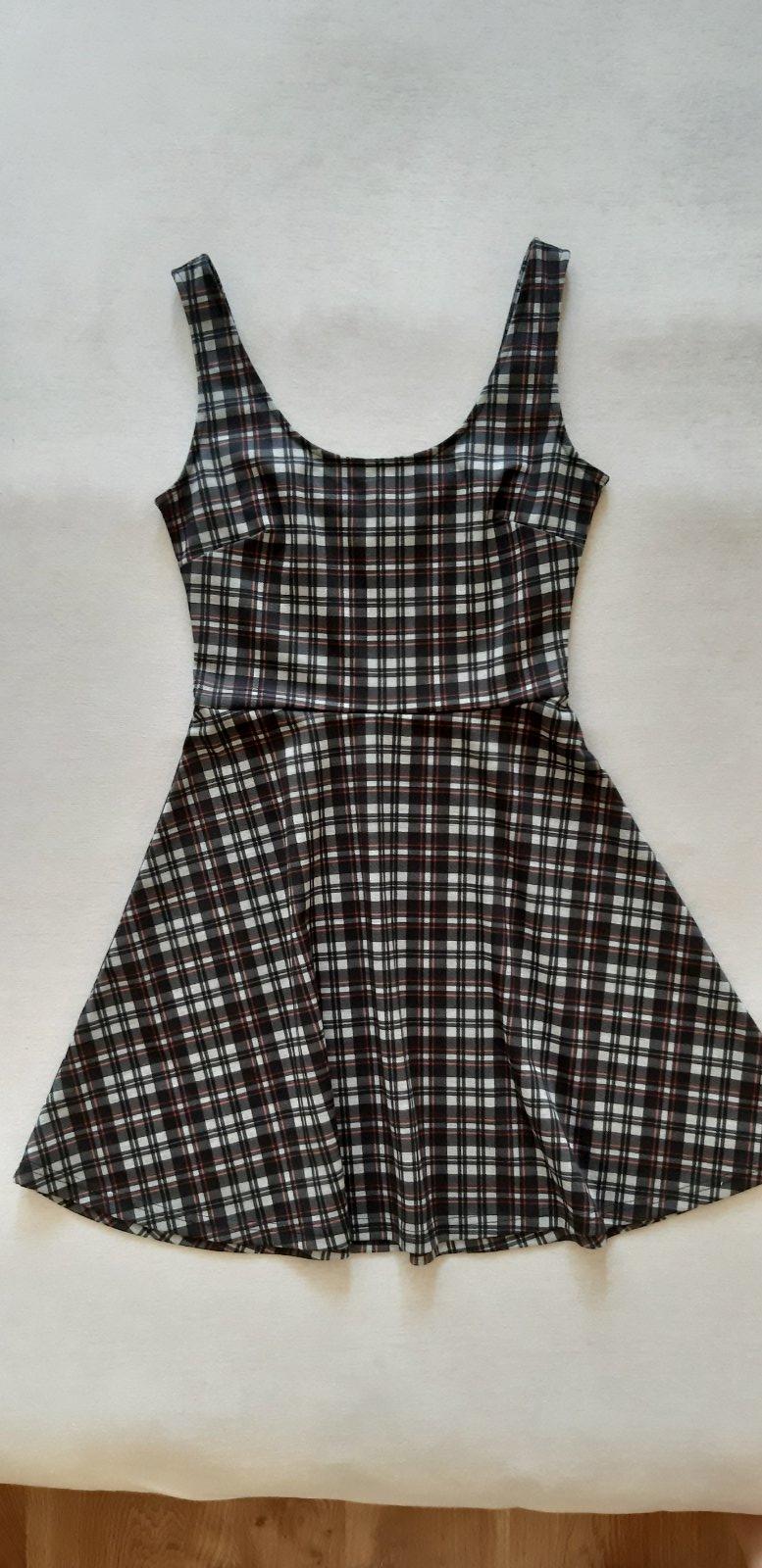 Šedočierne karované šaty ačkového strihu, top stav, bez poškodení.