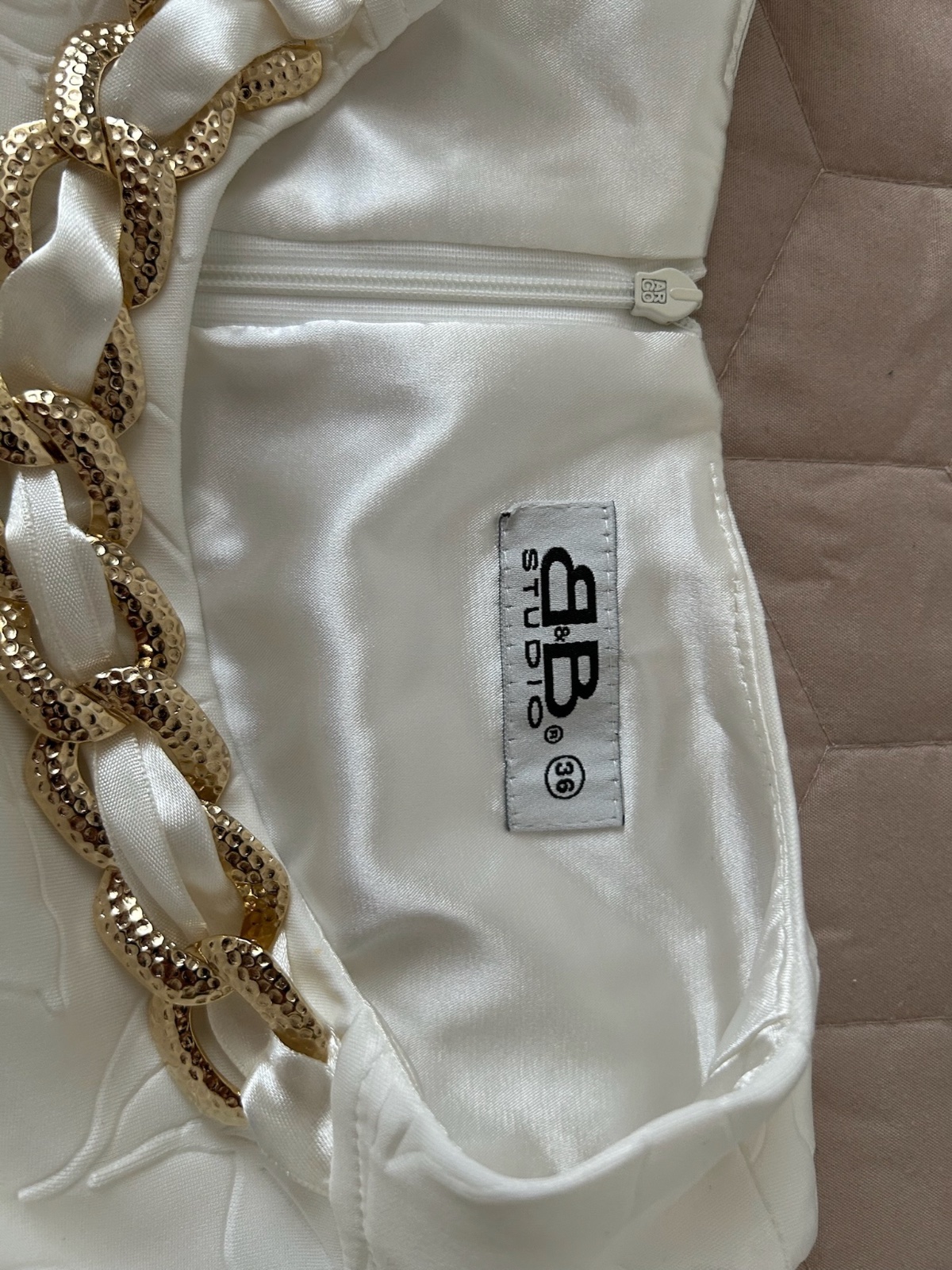 Krásne spoločenské šifónové šaty so saténovou podšívkou zn. SWING, biele, veľ. 36. Oblečené 1x na mojej svadbe, top stav. Povodna cena 80€, predám za 20€. Mierna dohoda možná.
