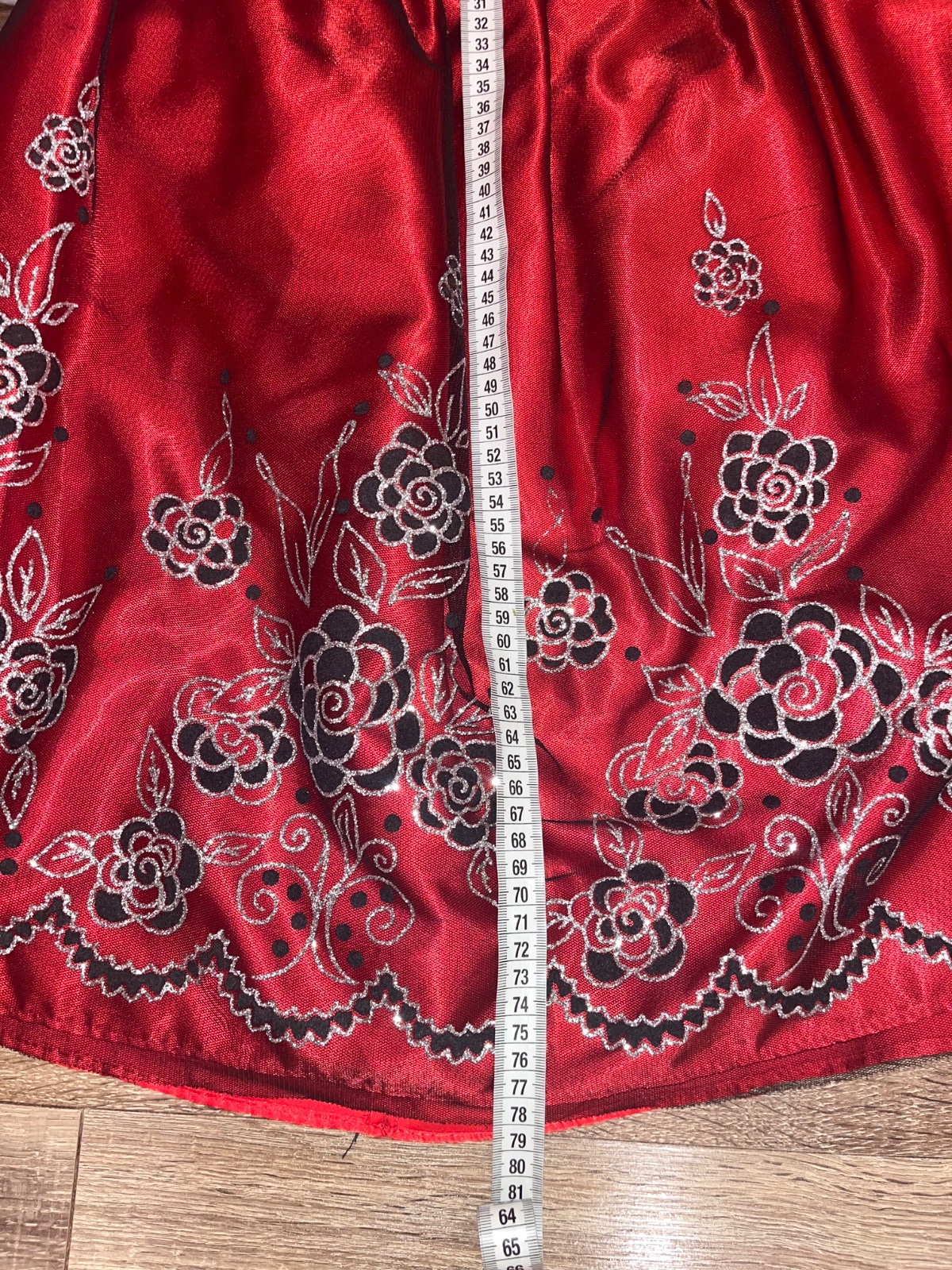 Krásne červené šaty s celočipkou. Majú A tvar a zapínanie na jeden gombík vzadu na krku. V top stave.