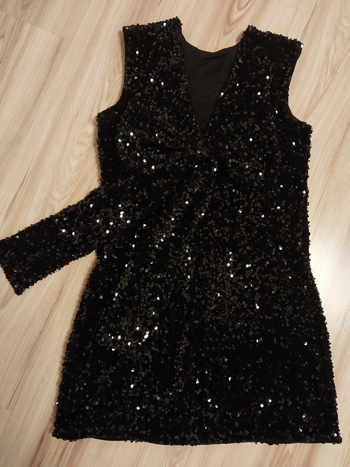 Nové flitrové šaty. Vzadu mašľa, elastické. Nenosené.