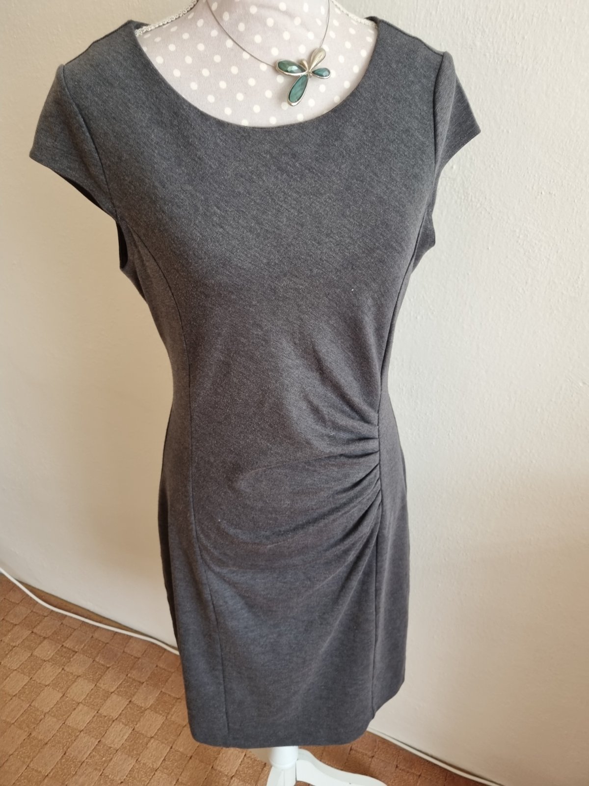 oblečené párkrát, 100 %m stav, píše 40, ,sedí na 38/40, elastický kvalitný úplet, melanžový taký melírovaný, antracitová farba, tmavolsivo až do čierna, dlžka 99, prsia 47x2, pás 402x, boky 48x2, všetko ešte popustí, riasenie na brušku skryje menšie nedostatky, vynosíte celoročne, nie sú hrubé, ani tenké...krásne ukážu podoblečené farebnou či bielou blúzkou, dozdobené šatkou či šperkom a máte oblečko aj do officu...