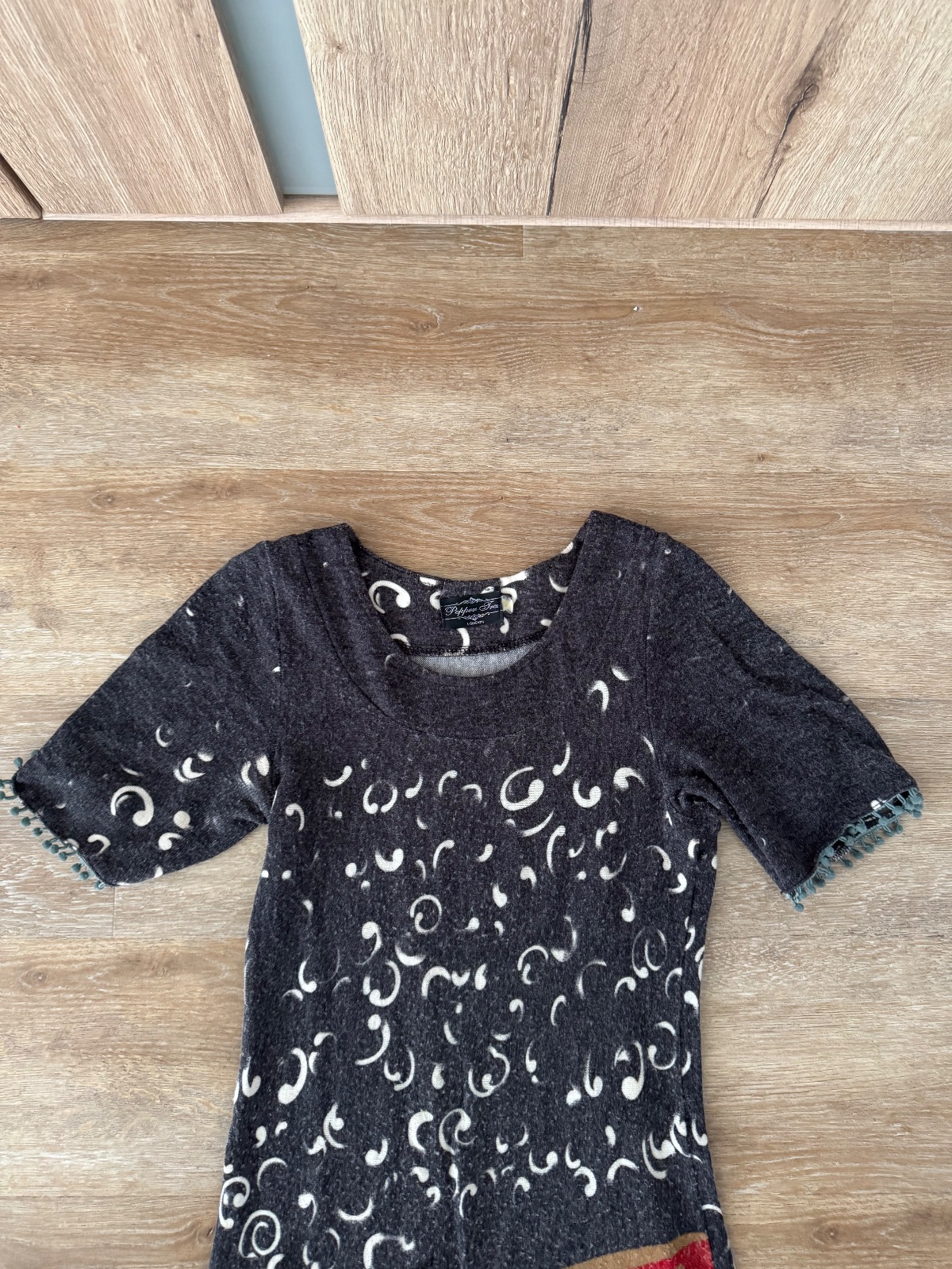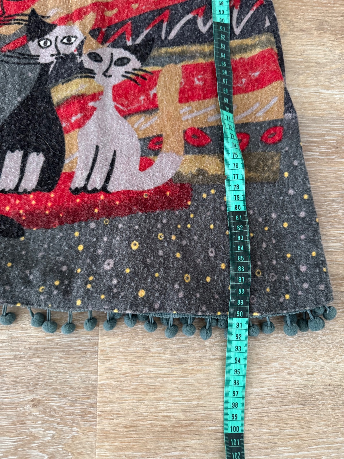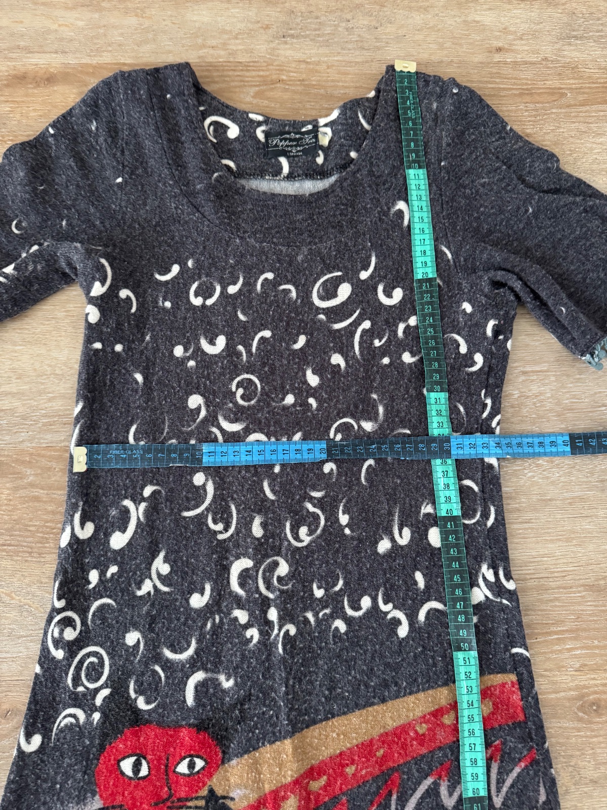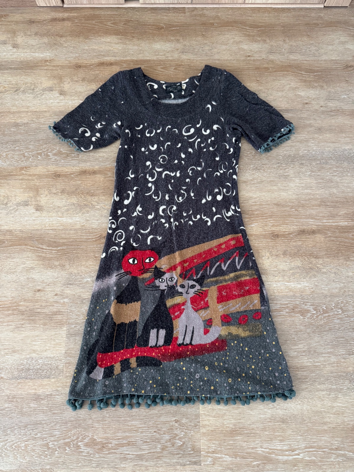 Ponúkam zaujímavé šaty v tmavošedej farbe + farebný motív mačičiek. Krásne sedia, prispôsobia sa. Ideálne na veľkosť S. Značka je Pepper Tree. Môžete ich nosiť celoročne. Boli pár krát nosené, naďalej v peknom stave. Zaujímavé je ukončenie na rukávoch aj dole, také efektné guličky. Inzerujem ešte 2 v takomto štýle. Poštovné podľa taríf.