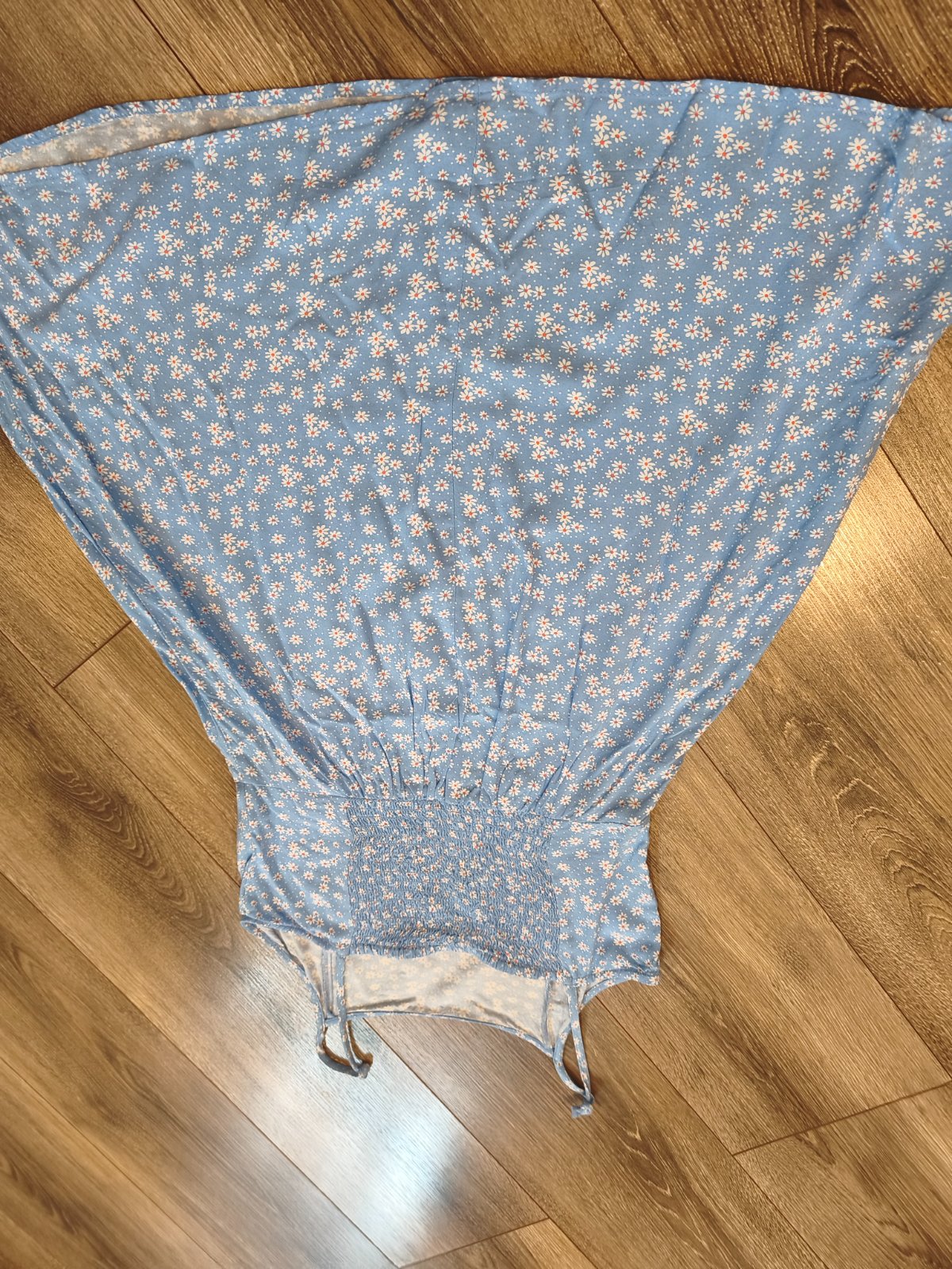 Pásikavé bledomodro biele šaty na letnú dovolenku. 100% tná bavlna. Materiál je krepový. Dĺžka- 82cm dĺžka od pazuchy dole je 56cm šírka pod pazuchami- 48/49cm x 2. Strihané do oblúka. Cena za kus ...