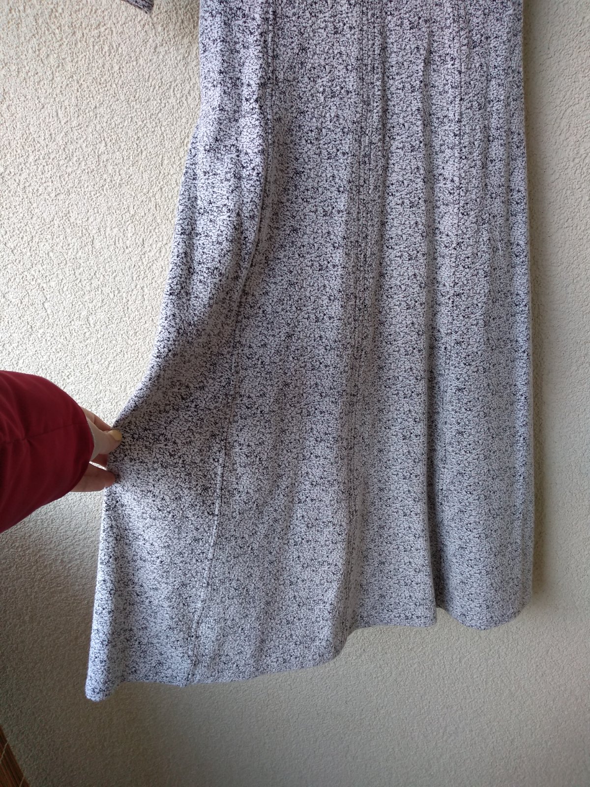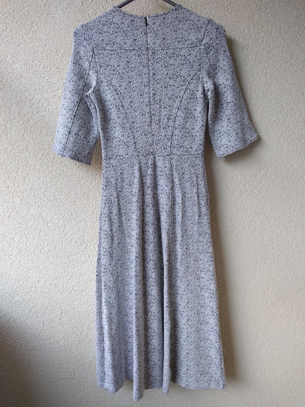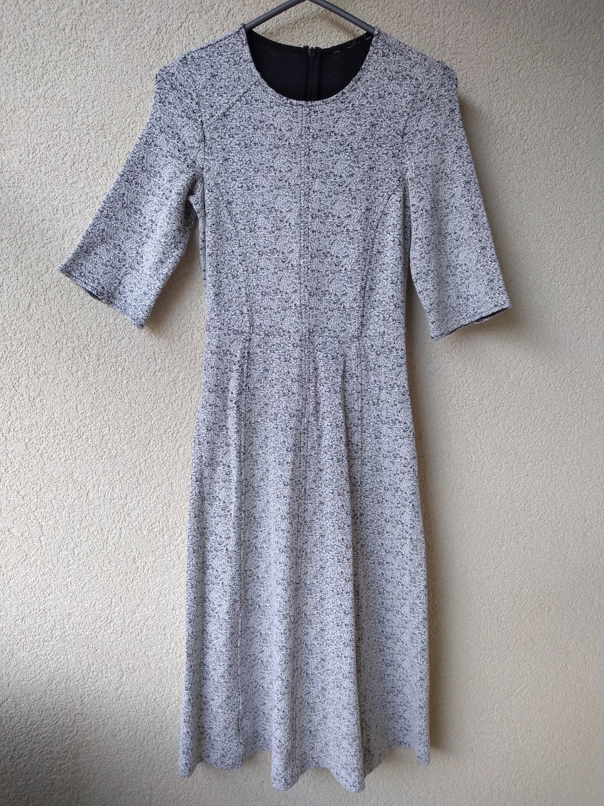 Predám krásne bledošedé hrubšie šaty s trojštvrťovým rukávom. Šité od krajčírky. 4-5x použité, bez poškodenia.