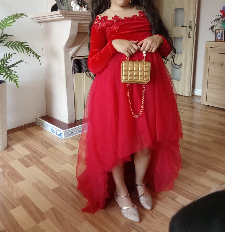 Prkrásne fialové šaty na svadbu alebo na nejaký príležitosť. Veľkosť píse na 11 rokov. Moja má 9, sú jej velké.