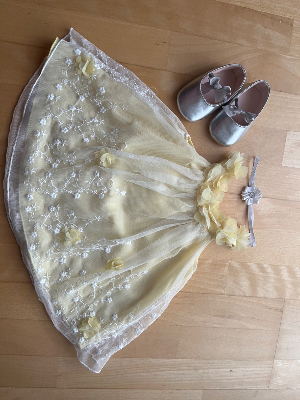 Slávnostný set pre malú princeznú. Šatôčky oblečené len 2x (z toho raz na fotení).