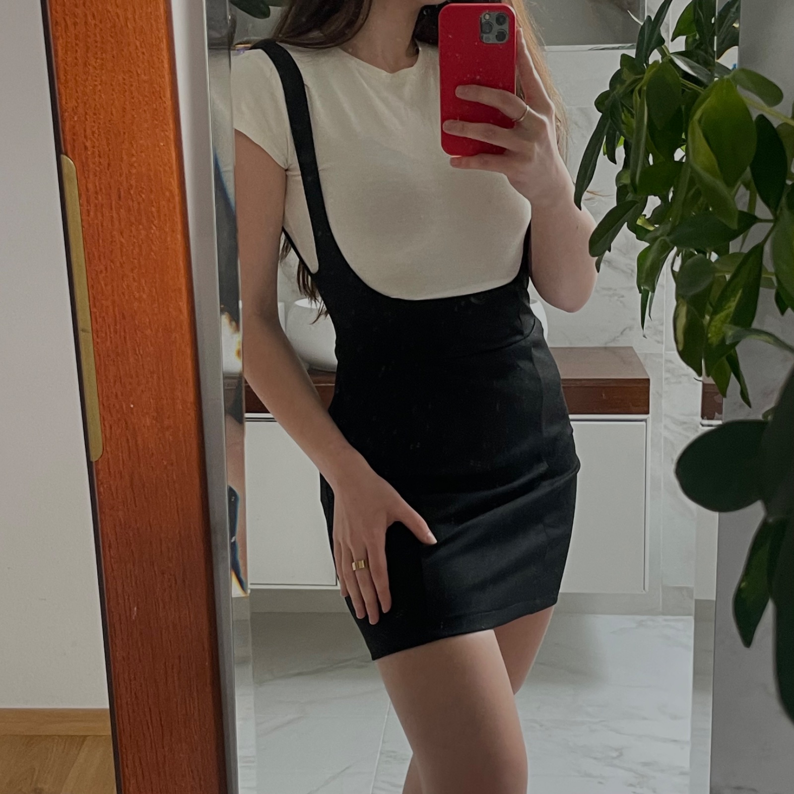 Čierne mini šaty značky Stradivarius v štýle pinafore (s trákmi). Elegantný a ženský kúsok, ktorý sa dá ľahko kombinovať s tričkom, blúzkou či rolákom. Priliehavý strih pekne formuje postavu, materiál je elastický a príjemný na nosenie.