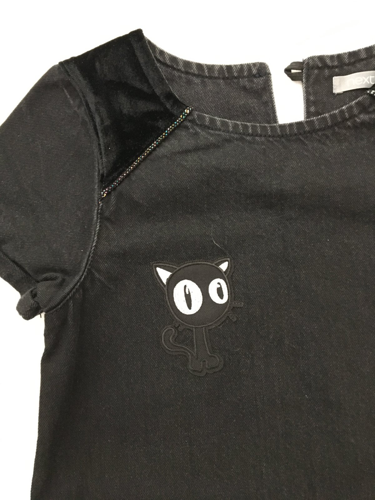 Fiflové šatočky A-čkového strihu,s aplikáciou mačičky, dĺžka vzadu 62cm.