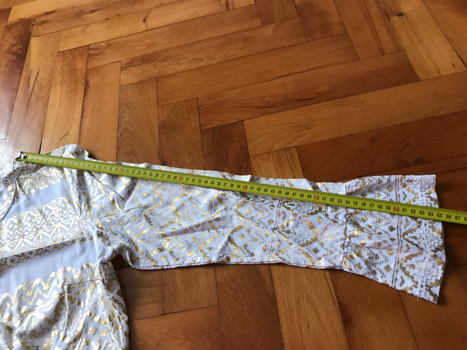 dĺžka- 88cm, šírka pod pazuchou- 50x2cm, dlžka rukáva od krku - 65cm, dl. vnútorného rukáva od pazuchy - 41cm, šírka v páse - 44-49x2cm