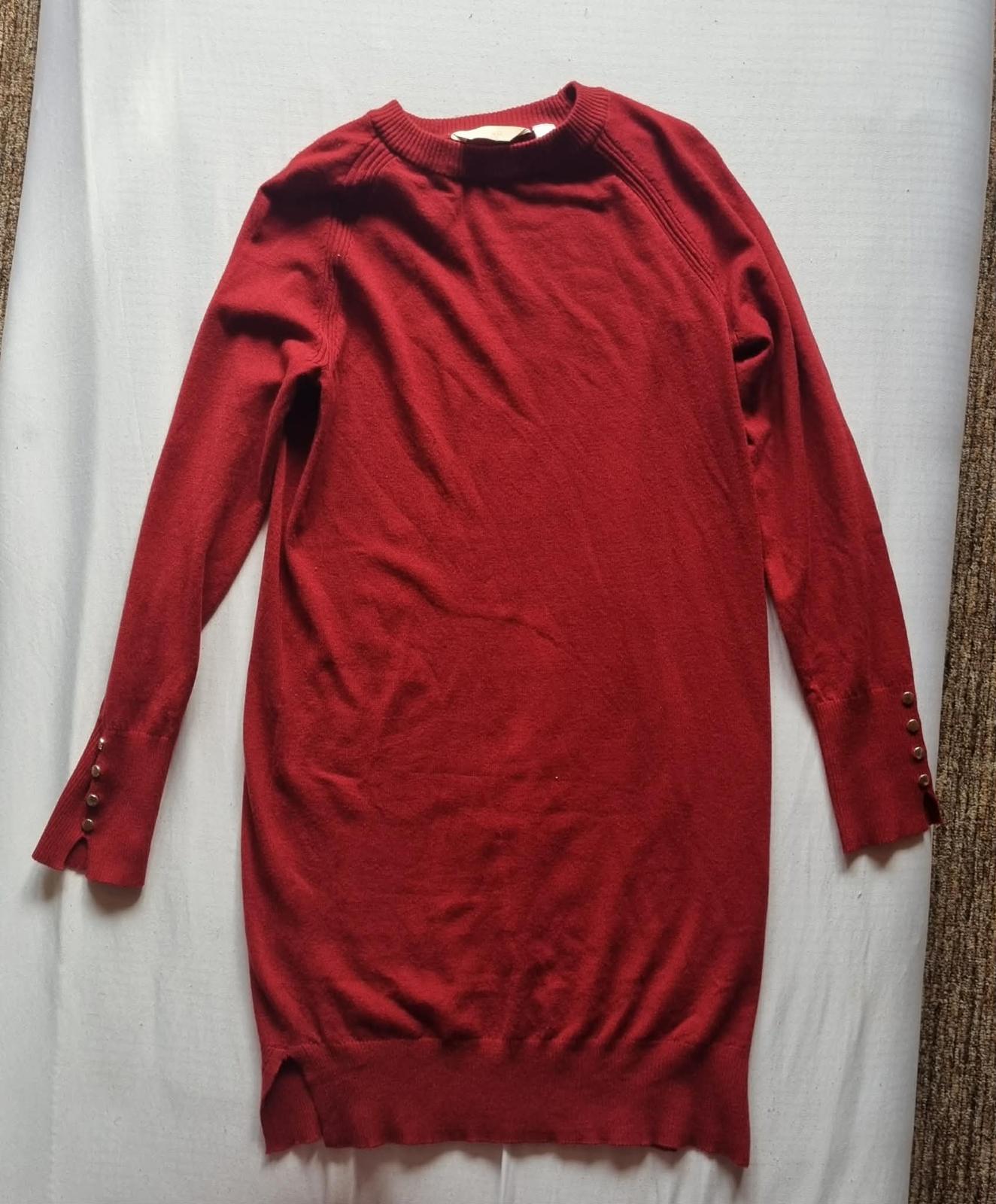 Svetrove šaty, raz oblečené, 100 % stav. Rozmery dĺžka 87 cm, šírka pod pazuchami pod pazuchami 48x2 merané v kľude. Dĺžka rukáva merané od pleca 67 cm.