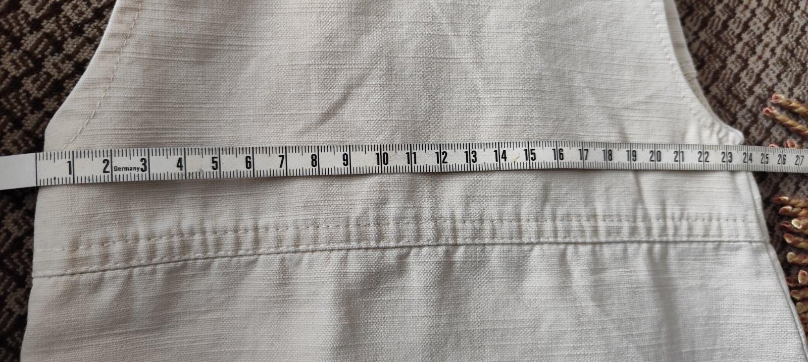 Predam krasne, akoby riflove satky pre dievcatko. Vysacku som odstrihla, tak sa prosim riadte rozmermi: cez prsia 24cm x 2, dlzka zadneho dielu je od vystrihu dole 35cm. Je to sfotene, pozrite na foto. Material je jemnucky, velmi prijemny.