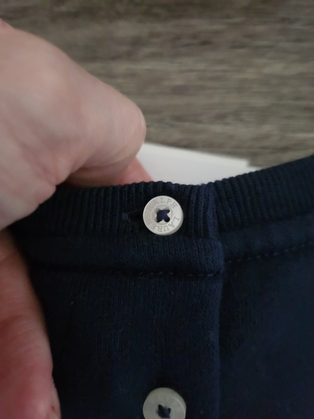 Ralph Lauren saty, su tmavomodre, blbo sa fotia, logo vpredu aj na gombikoch, pise na 6mes