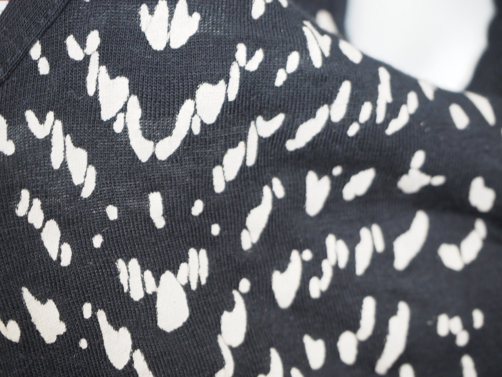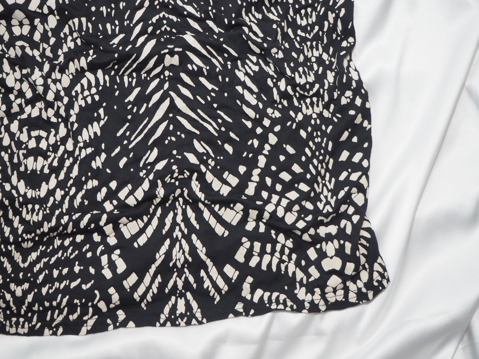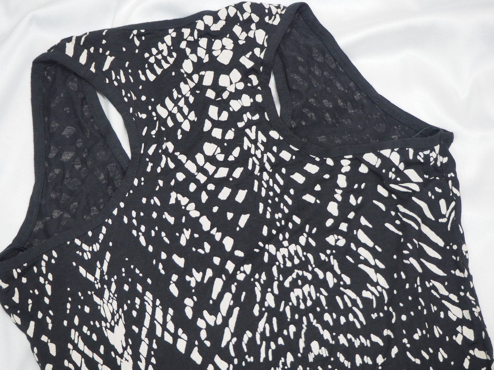Kvalitné úpletové šaty čierno-bielej farby, v páse prestrihnuté, pútka na opasok, materiál % viskóza, % elastan, super stav.
