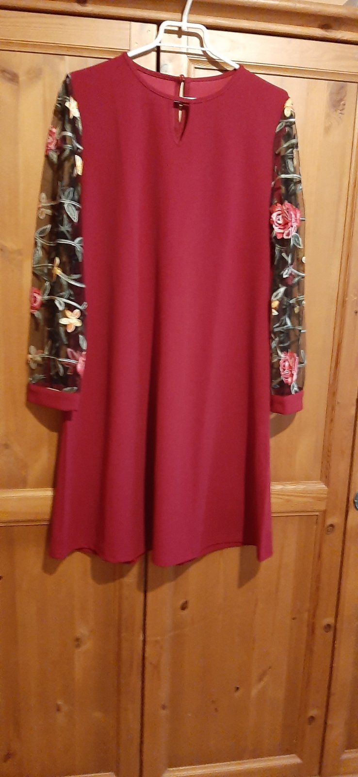 Vzala som si zlú veľkosť, sú mi široké. Majú kvetinové, priehľadné rukávy, okrúhly výstrih, strih do A, využitie sviatočné - jar/jeseň. Dĺžka 97, pod pazuchami 54, rukávy od ramena 64.