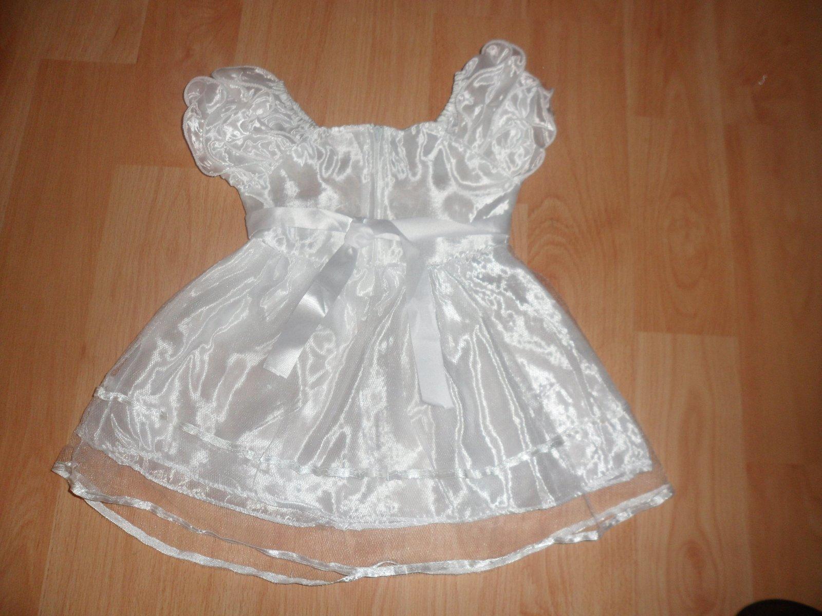 Veľmi pekné, super stav, veľkosť odhadujem na 1-1/2 roky. Vzadu je zips a stuha na viazanie.