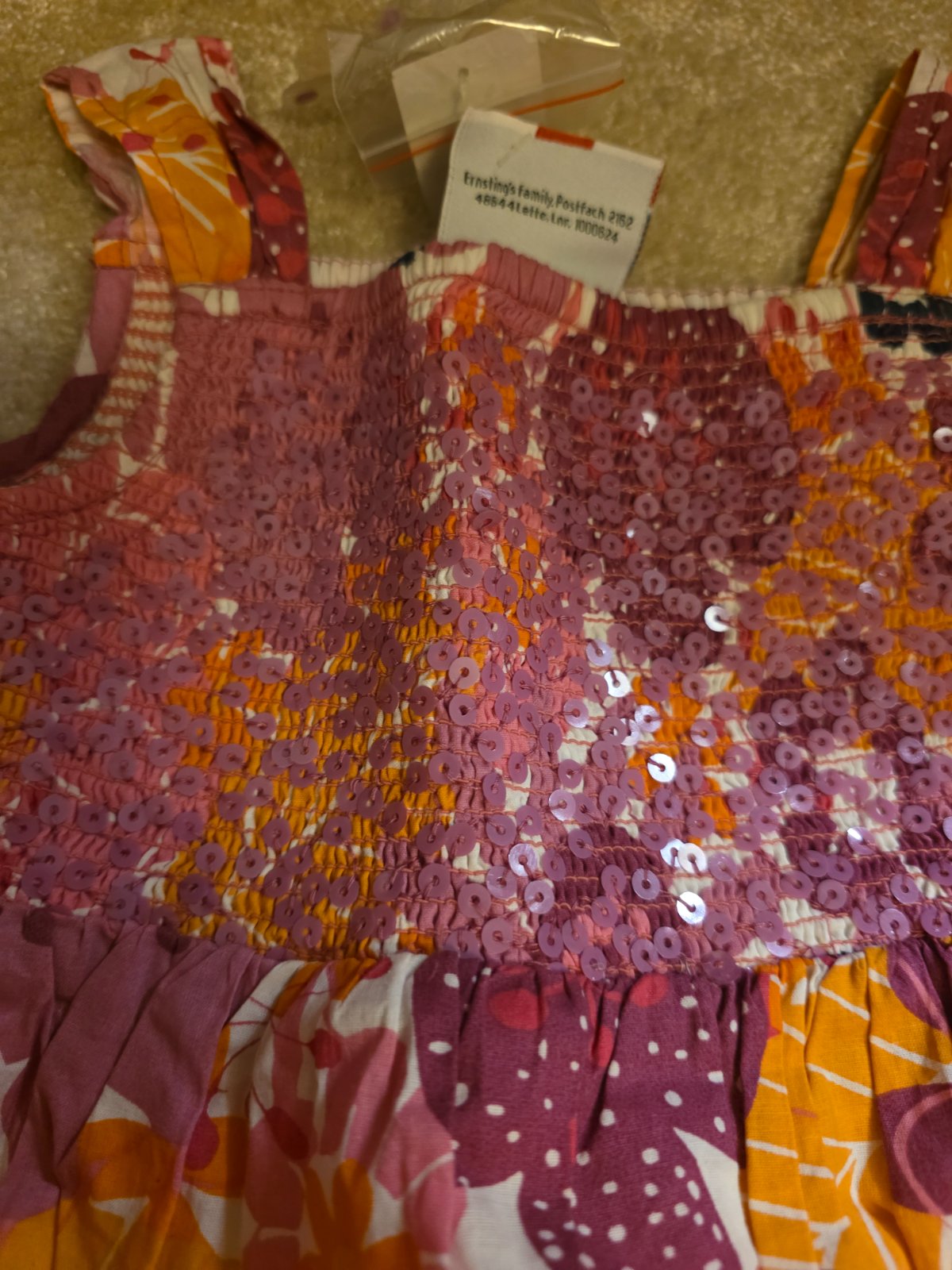 Bavlnene, vhodne na leto, cez hrud gumicky, vpredu na tych gumickach su este flitre. V sacku par nahradnych. Spodnicka, dolu na šatách volan.