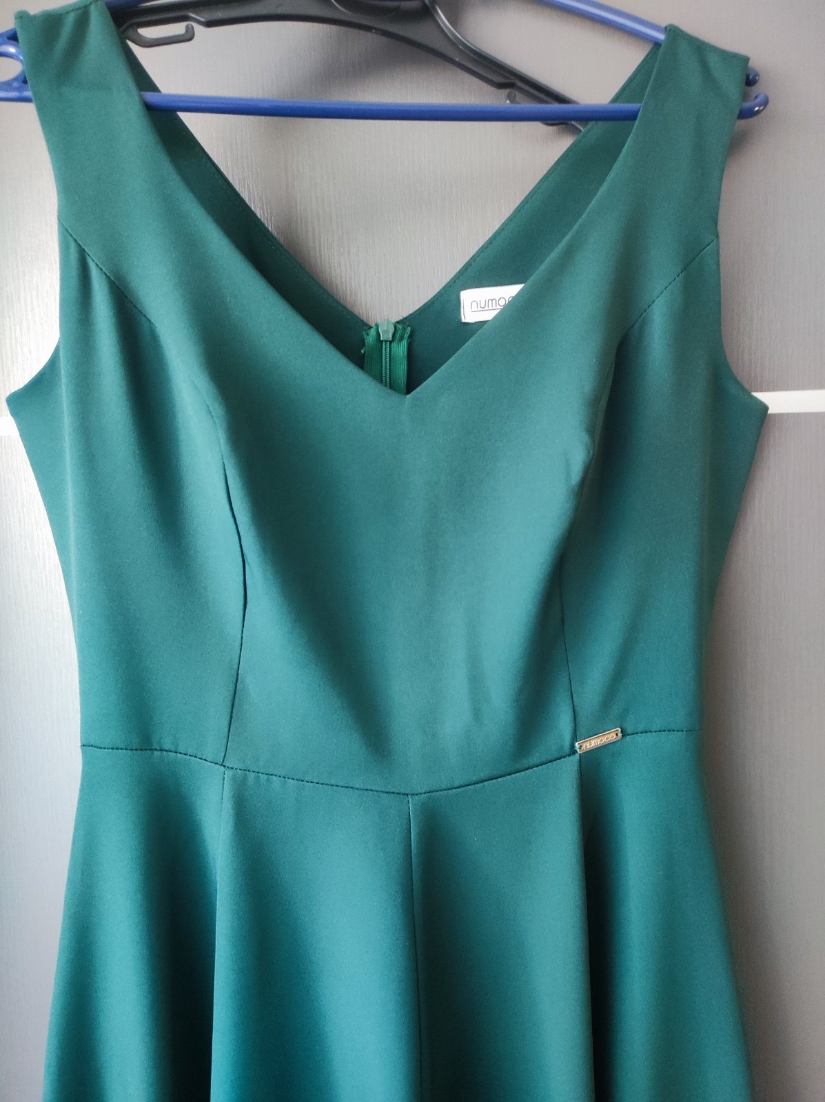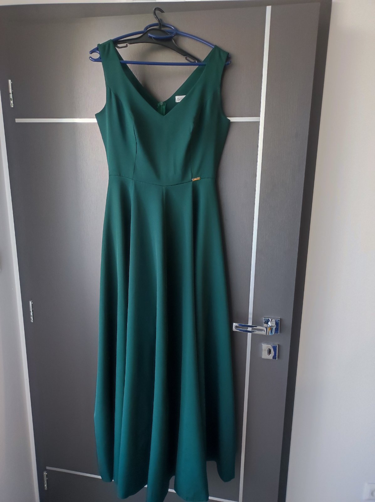 Prekrásne smaragdove šaty s výšivkou a kamienkami fotka nevráti reálny vzhľad, majú opasok, veľkosť je 42 ja nosím bežne Mko a s opaskom sadnú presne na postavu, raz oblečené na 2-3hodinky Fotene B...