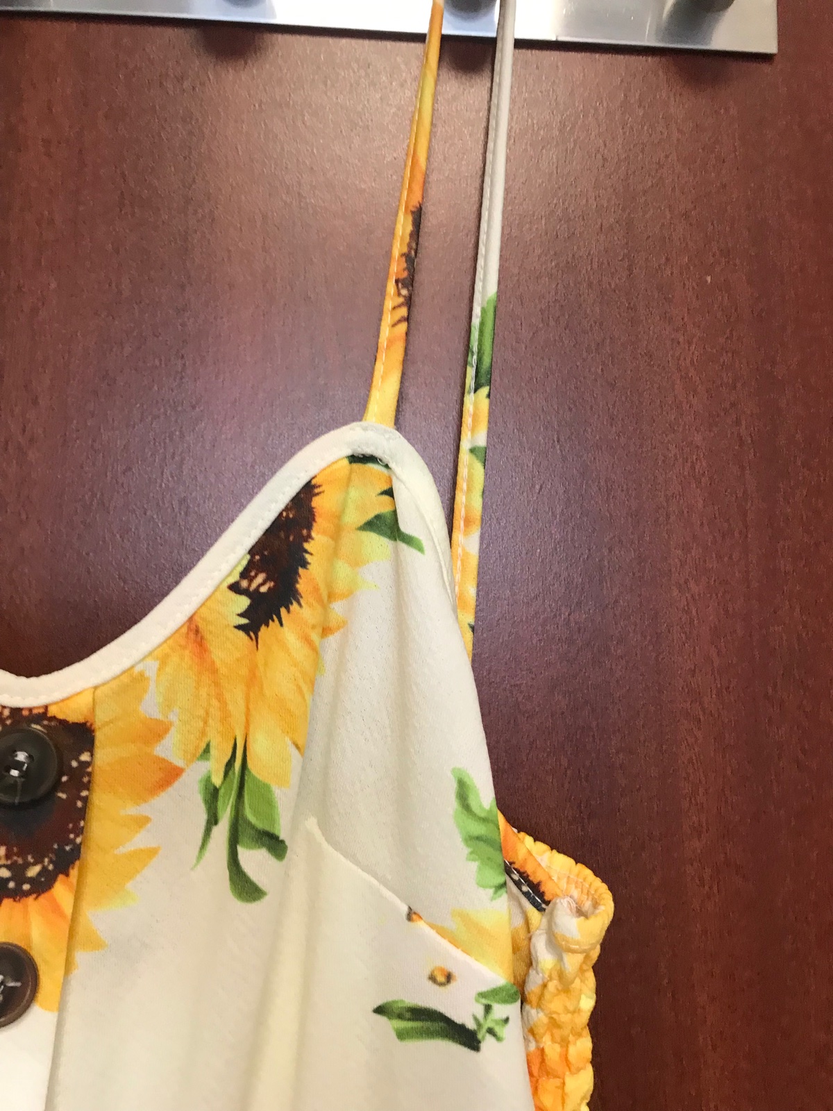 Luxusné letné šaty, bielo-žltej farby, vzorované, zapínanie na gombíky, po celej dĺžke, všité bočné vrecká, materiál 100% bavlna, super stav. prsia 50 cm pás 49 cm boky 76 cm dĺžka 109 cm dt 23