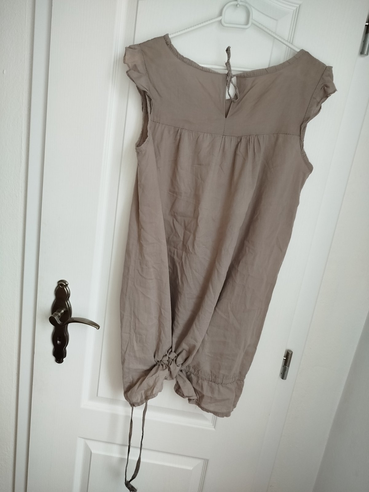Letné vzdušné tenké šaty príjemné na leto dole pri volane sa dajú stiahnuť zvnútra šnúrkou nosené.stale pekne pri šiti hore trocha rozparane pri nosení nevidieť alebo dáte jeden steh cena prisposobena dĺžka 84cm šírka pod pazuchami v kľude 50x 2cm povolia 54x2cm.