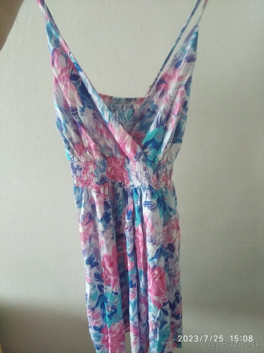 Nové, iba oprané šaty, kúpené v Chorvátsku a nevynosené..ľahulinké a použiteľné či už ako sukňa alebo ako šaty. Zloženie: 70% hodváb, 25% bavlna, 5% elastan (Made in Italy)