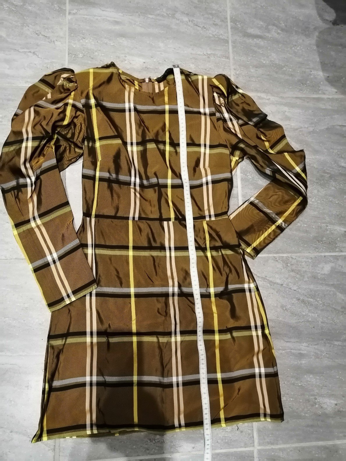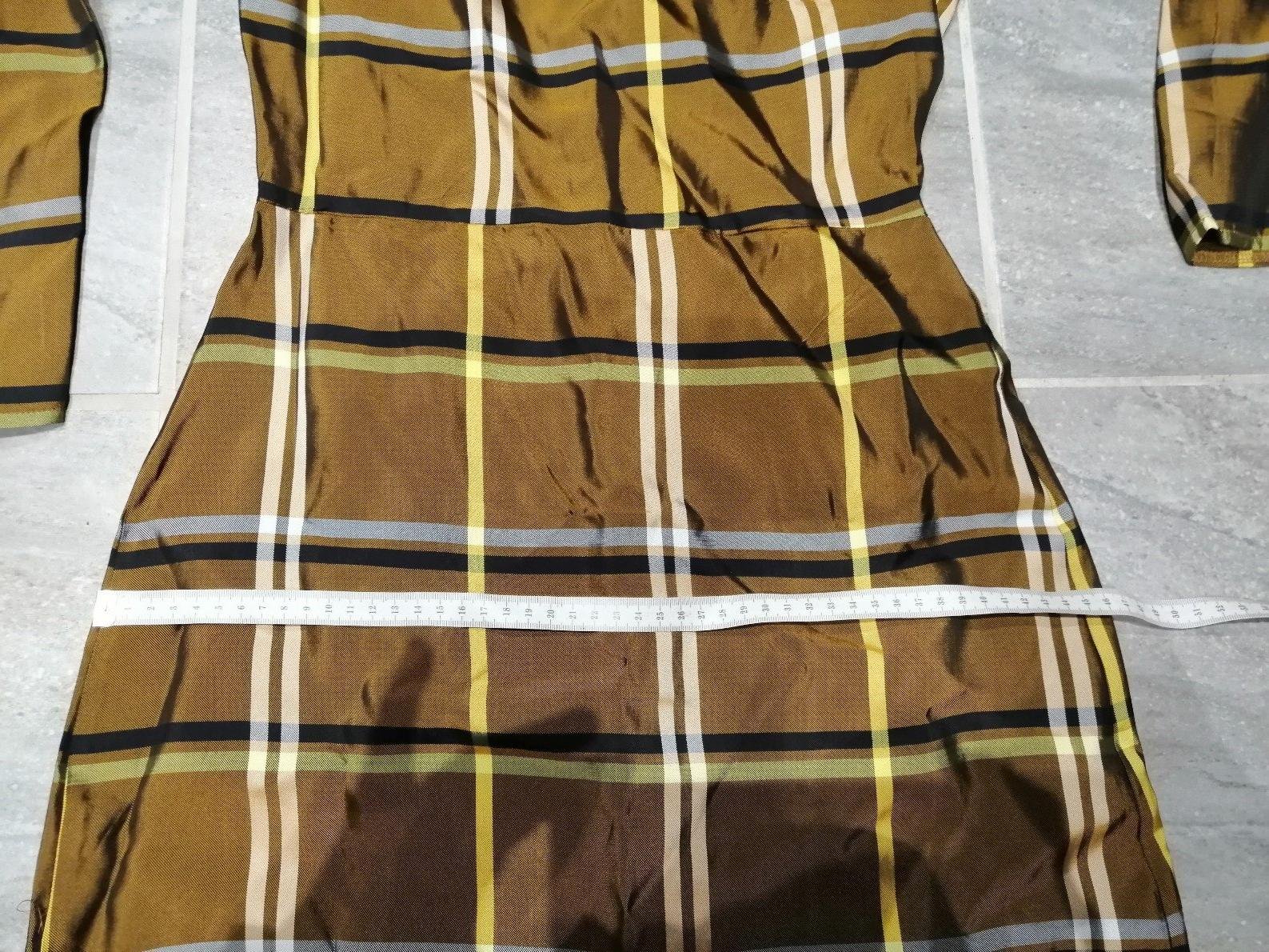 Netradičná farebná kombinácia. Žiaria. Hodia sa najmä ženám s čiernymi vlasami a zelenými očami a olivovou pleťou. V páse treba previazať čiernym opaskom. Stav ako nové.