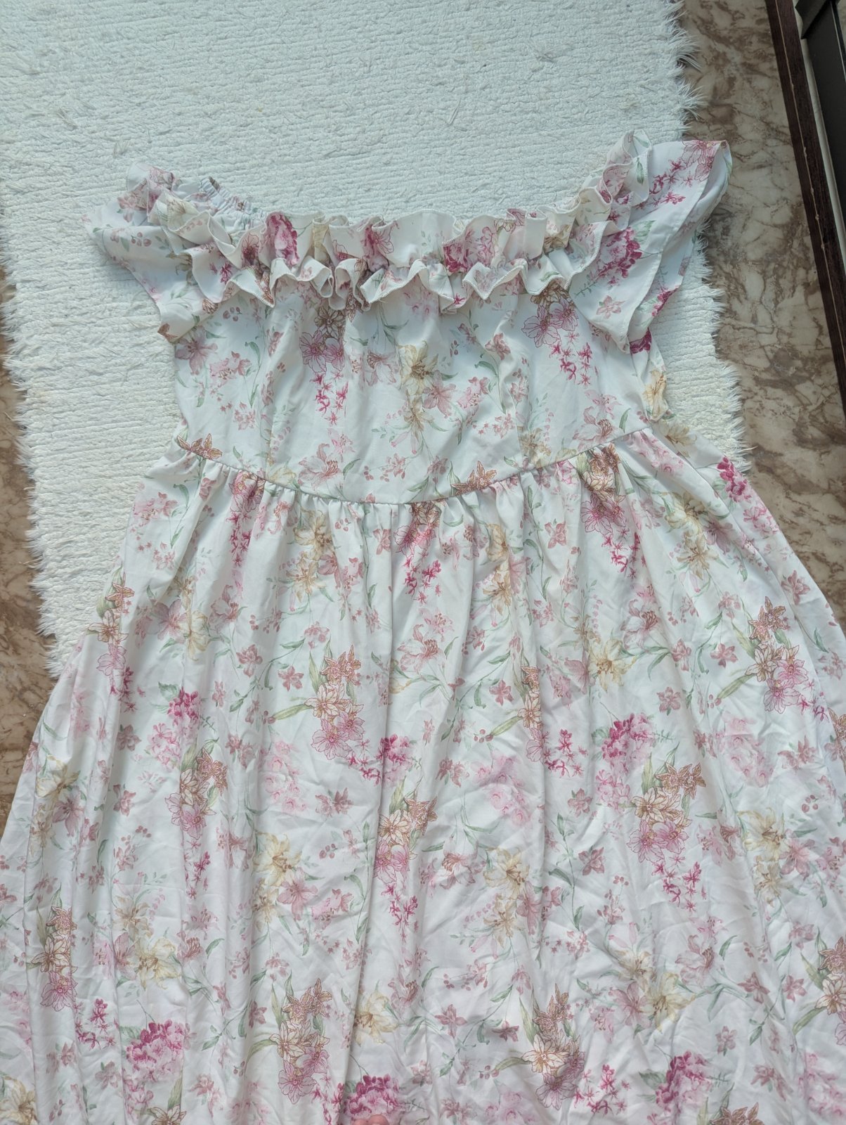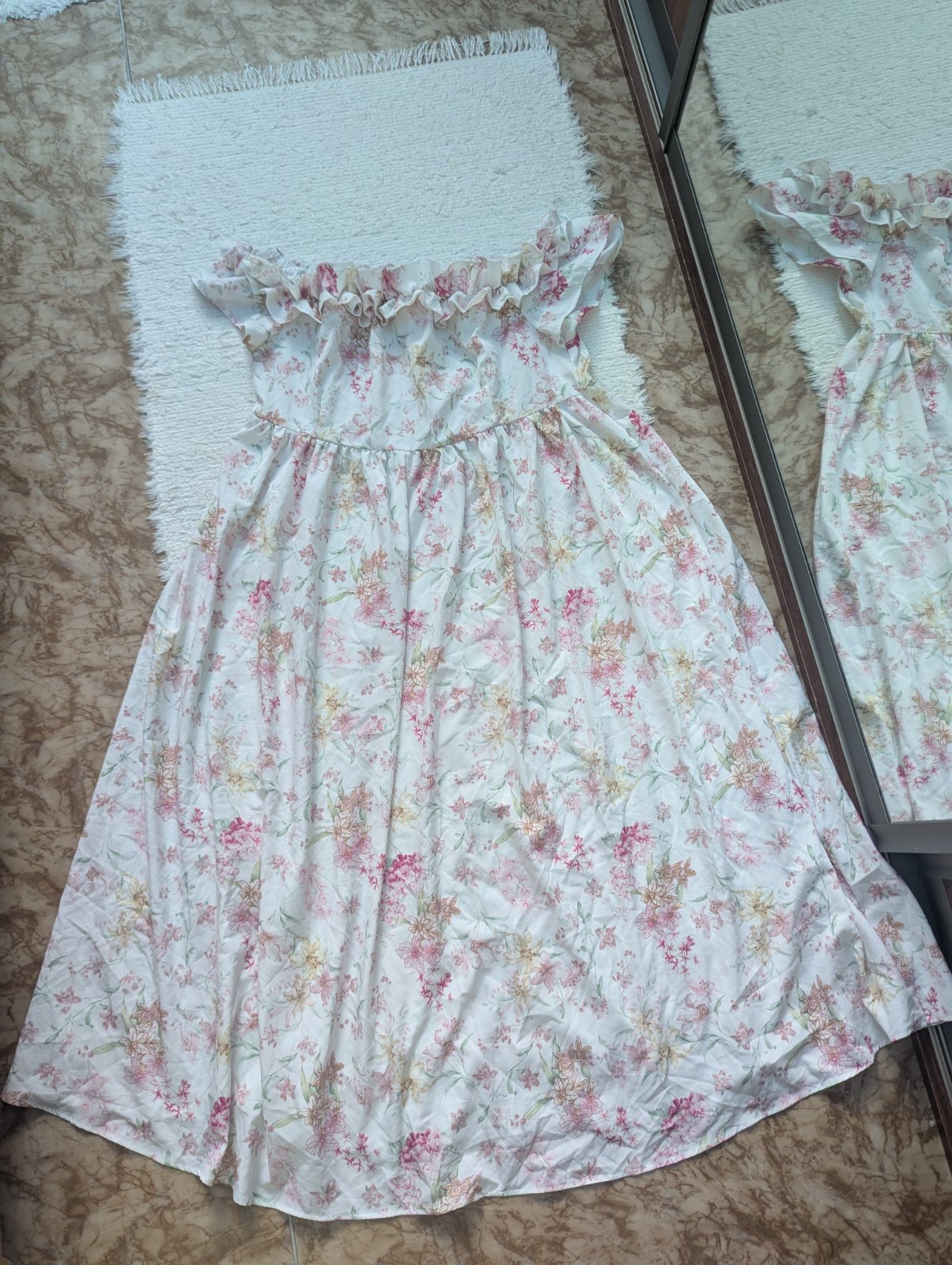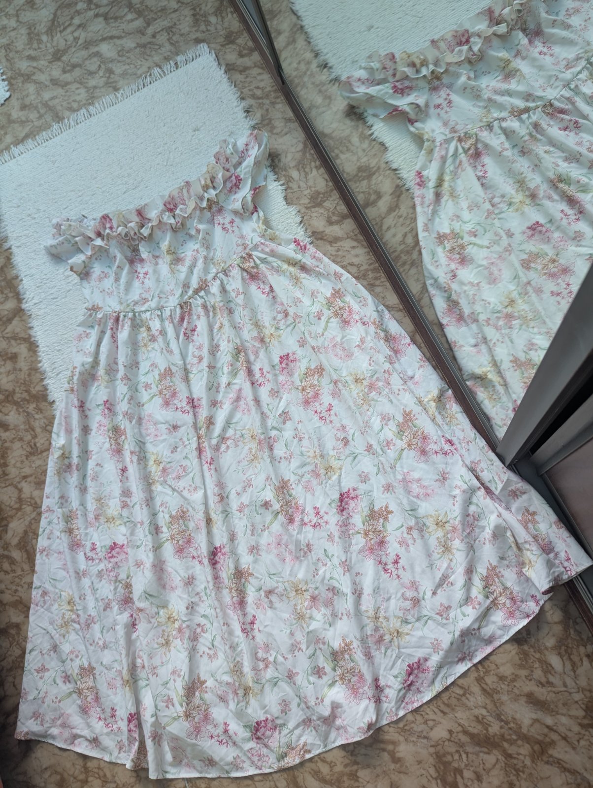 Dámske šaty, ktoré sedia na veľkosť 46/48, no každopádne sa treba riadiť rozmermi. Šaty sú z príjemného vzdušného materiálu, sú vhodné na bežné nosenie ale aj na spoločenskú udalosť (letná svadba, oslava, promócie, krstiny).